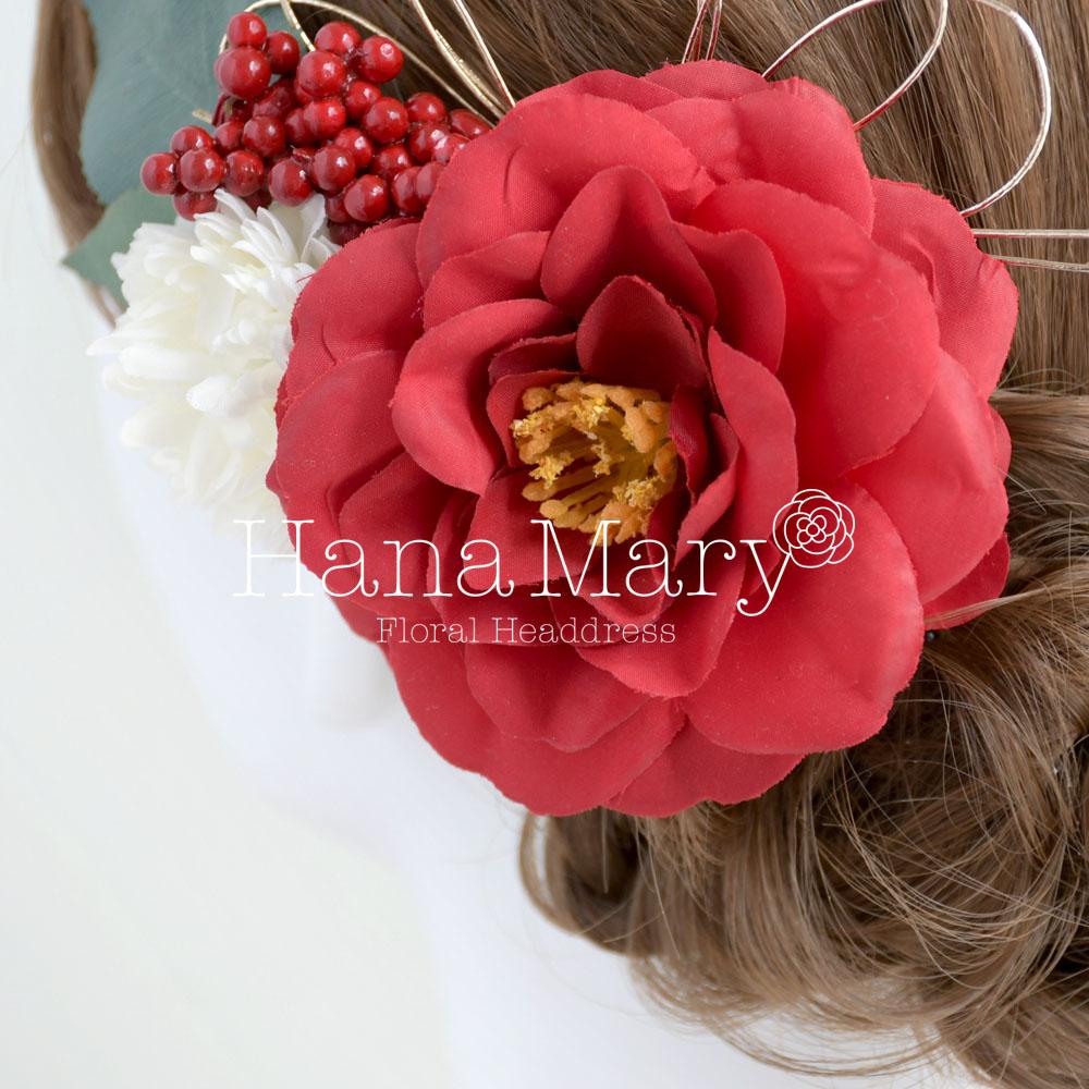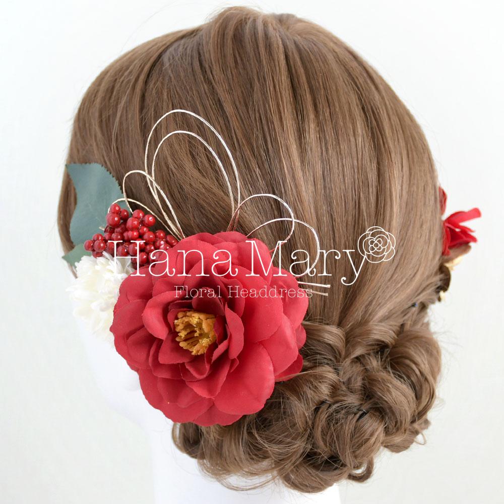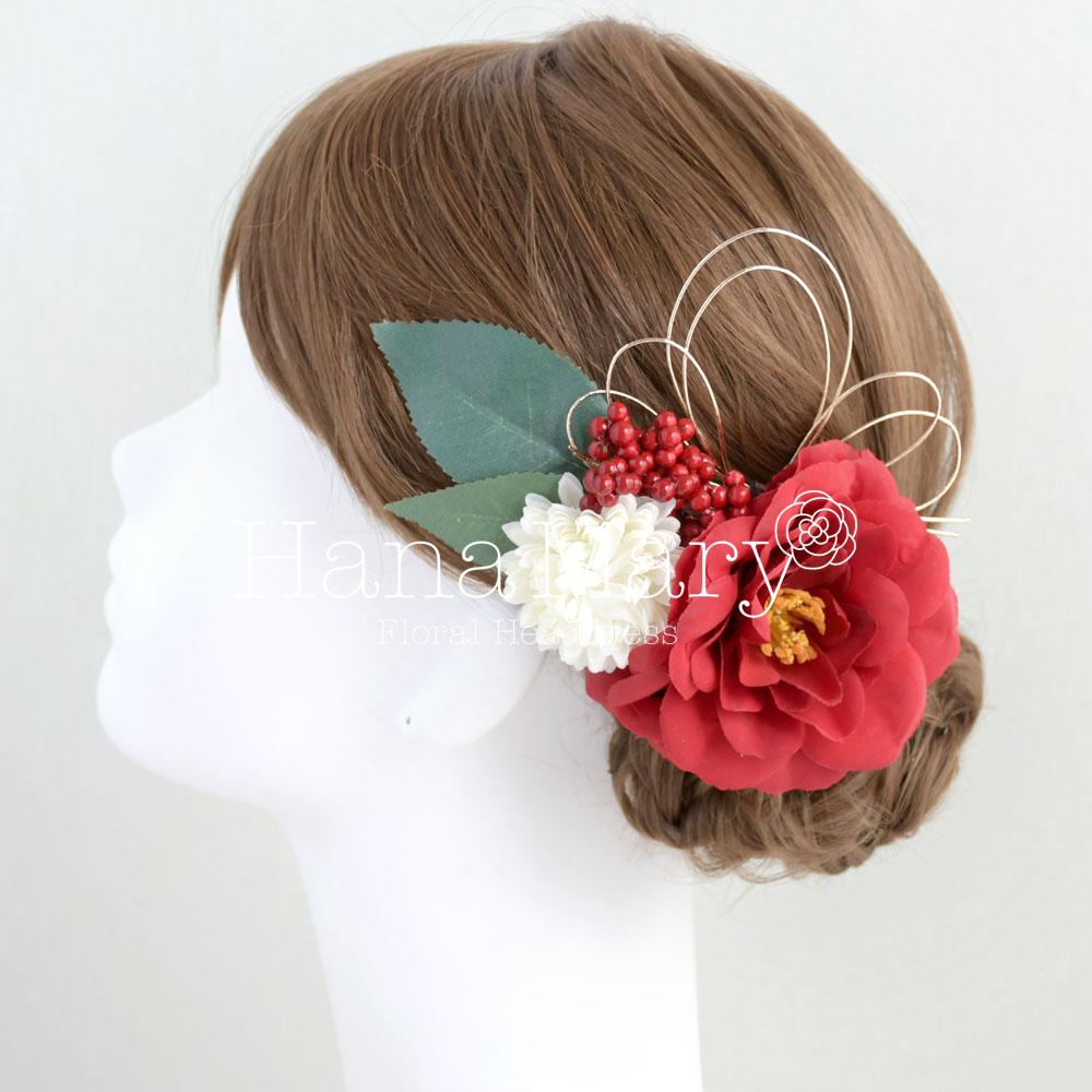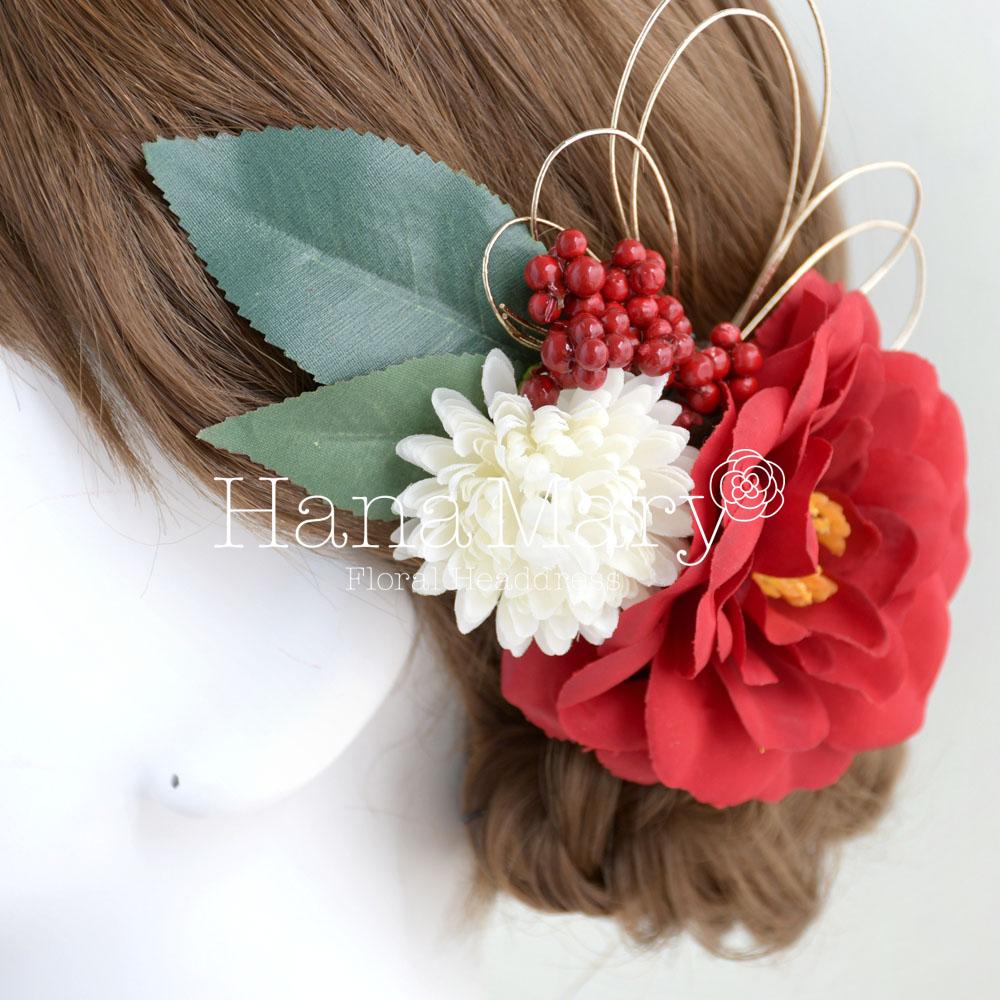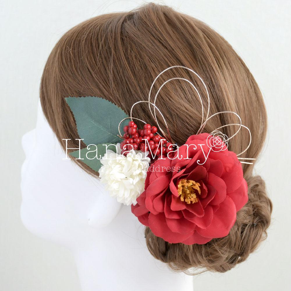 ツバキのお花に華やかな水引を 成人式 卒業式 結婚式 振袖 袴 髪飾り 着物 椿