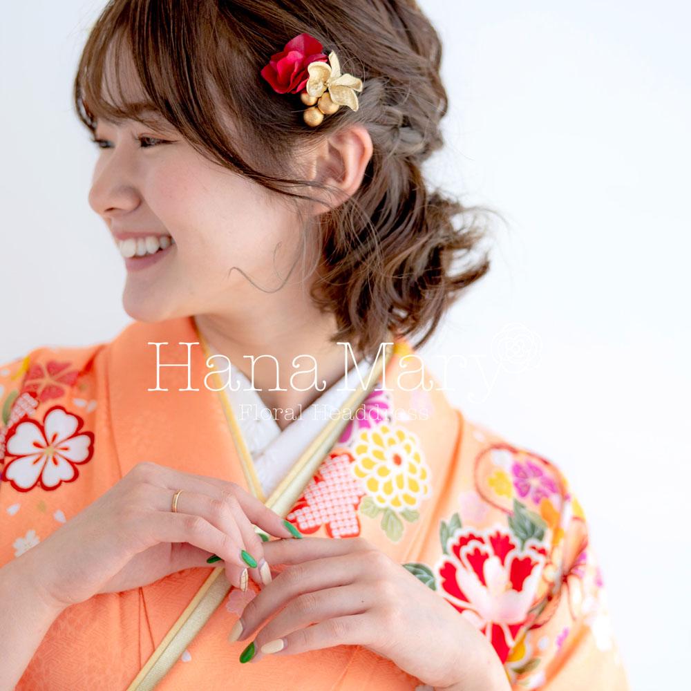 HanaMaryの髪飾りは生花をリアルに再現したアートフラワーと呼ばれるハイクオリティーな造花を使用しています。耐久性に優れ、成人式・卒業式やウェディングなどに何度でも繰り返し使用することができます。