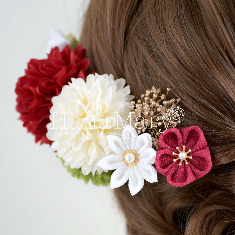 HanaMaryの髪飾りは生花をリアルに再現したアートフラワーと呼ばれるハイクオリティーな造花を使用しています。耐久性に優れ、成人式・卒業式やウェディングなどに何度でも繰り返し使用することができます。
