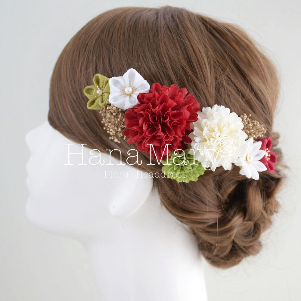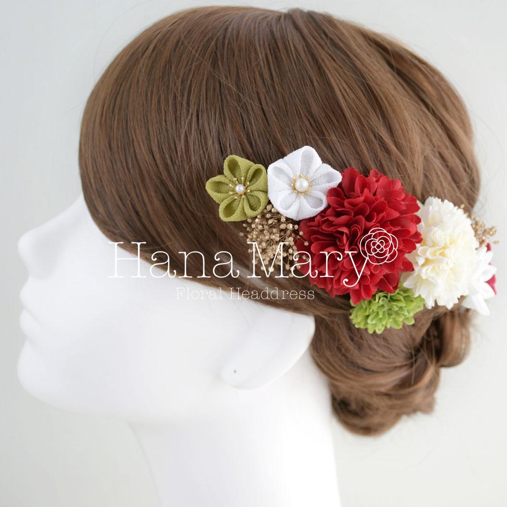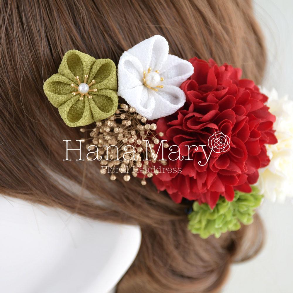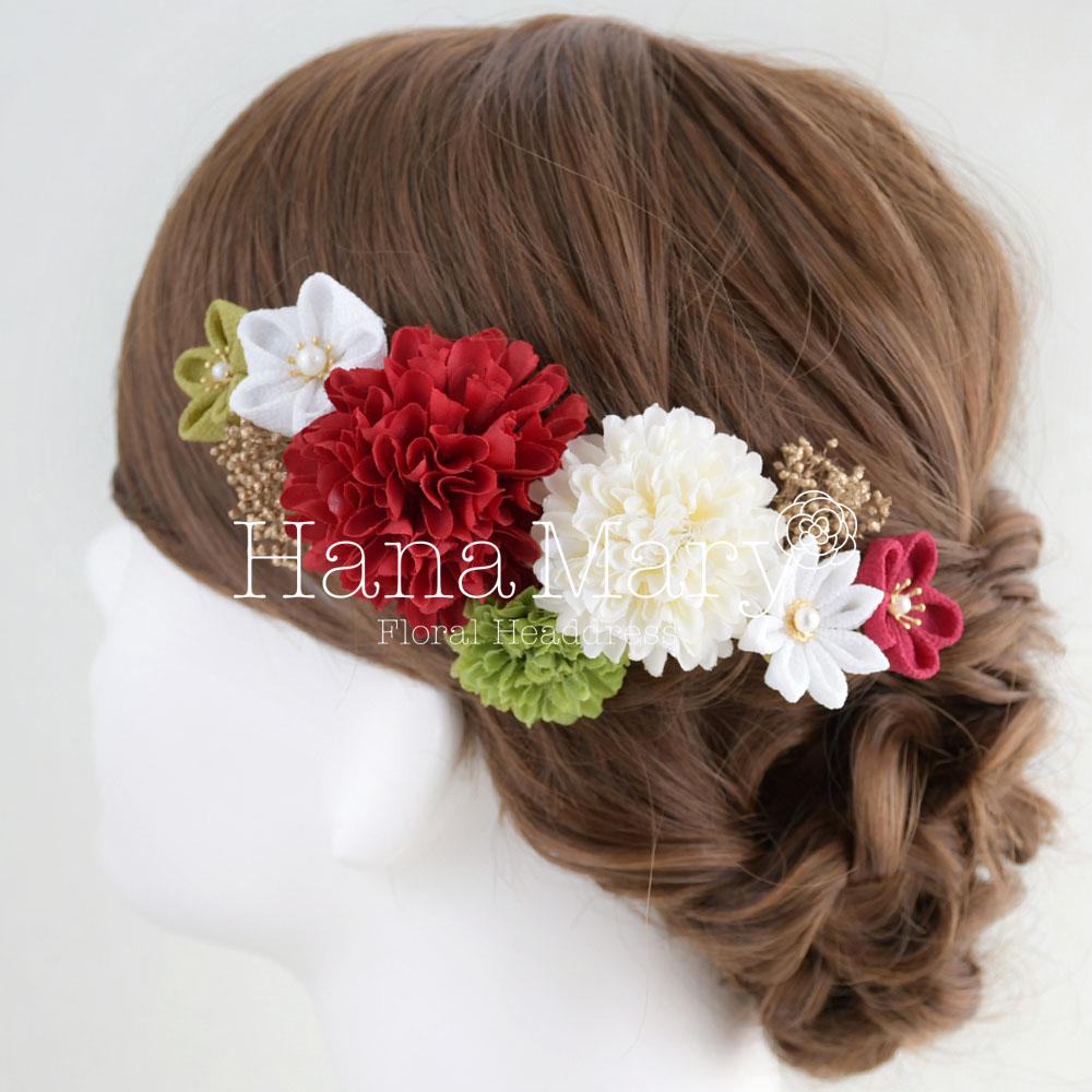 つまみ細工とフリルマム 古典彩色 成人式 卒業式 和装髪飾り