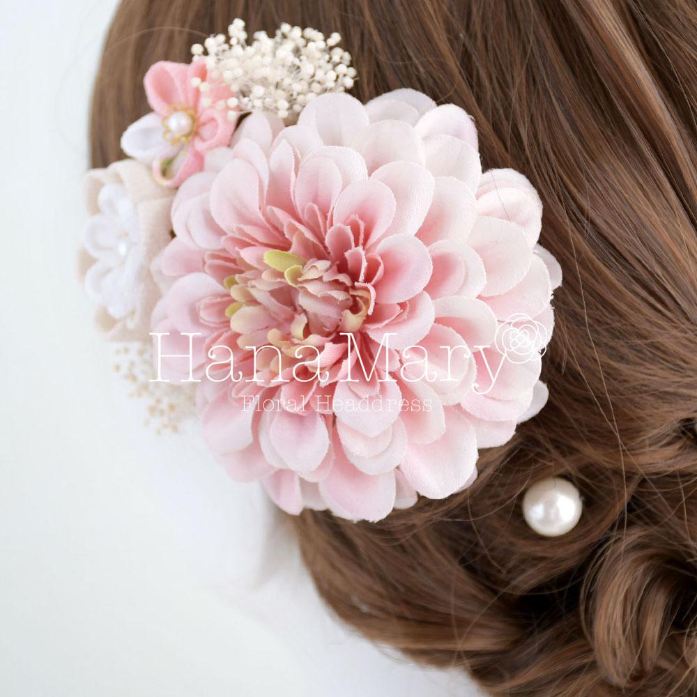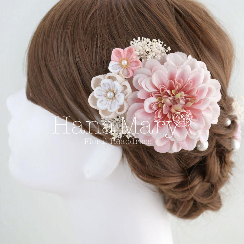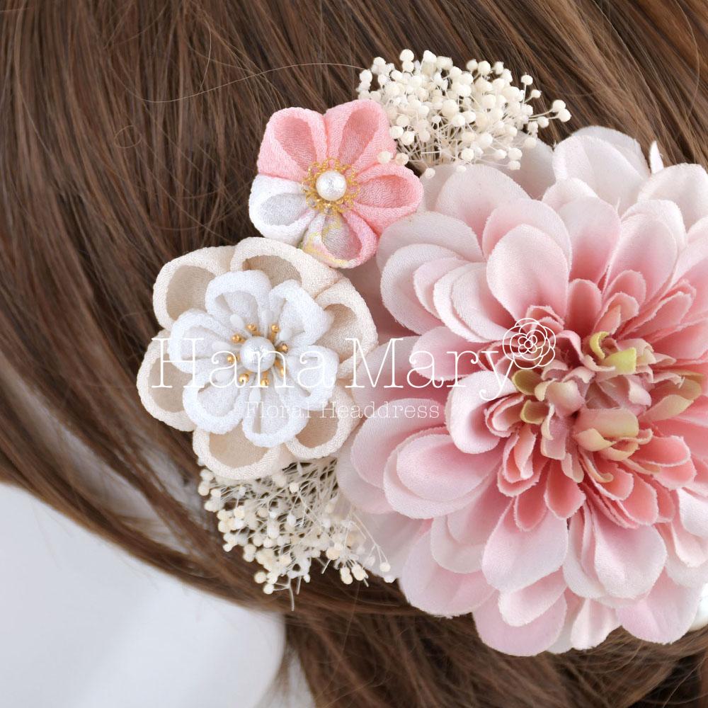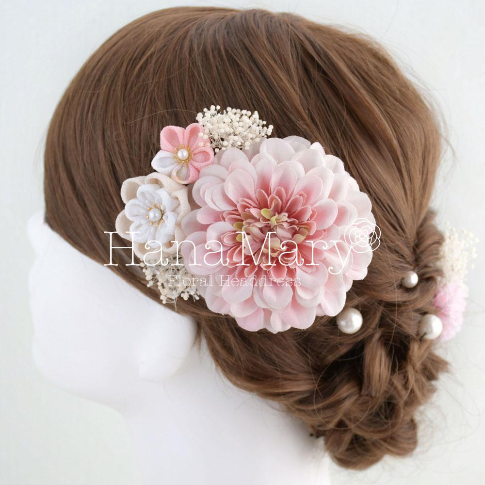 ジニアとつまみ細工【淡かわいい】成人式 卒業式 結婚式 髪飾り