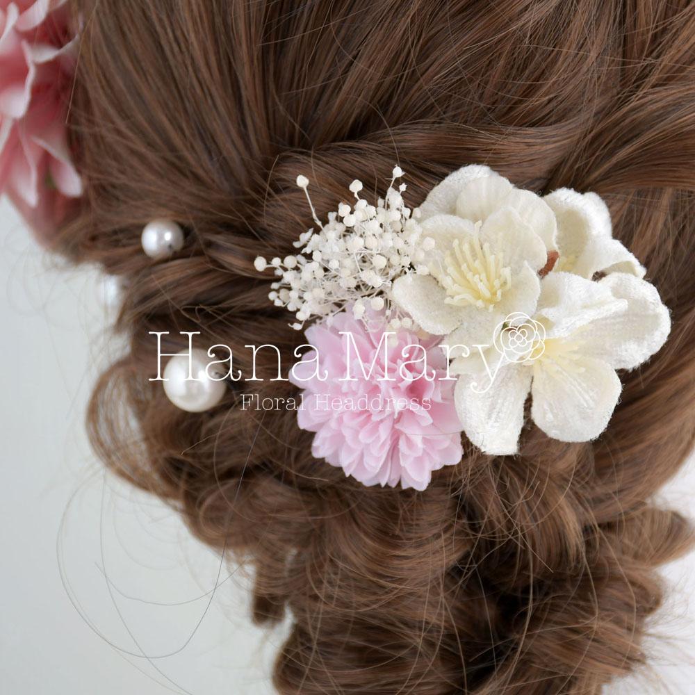 HanaMaryの髪飾りは生花をリアルに再現したアートフラワーと呼ばれるハイクオリティーな造花を使用しています。耐久性に優れ、成人式・卒業式やウェディングなどに何度でも繰り返し使用することができます。