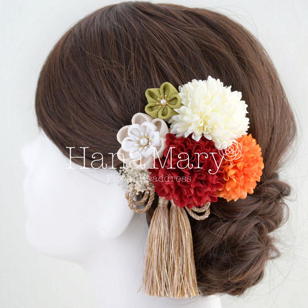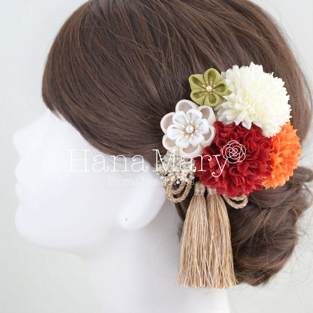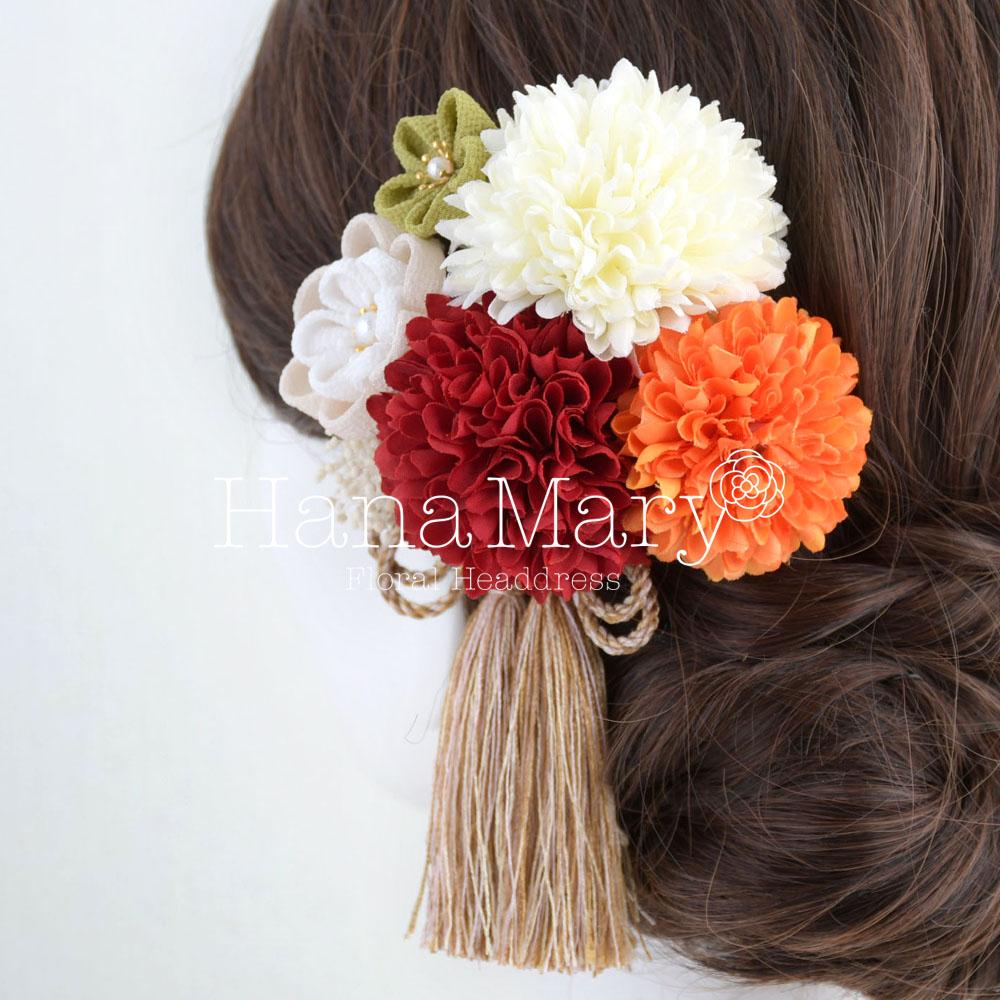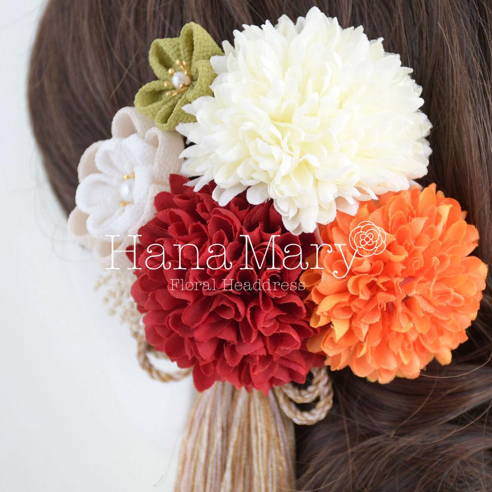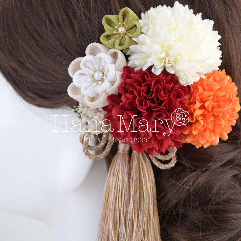 和装スタイルに人気のマムの髪飾りをつまみ細工で彩ったハナマリーだけの髪飾りです!