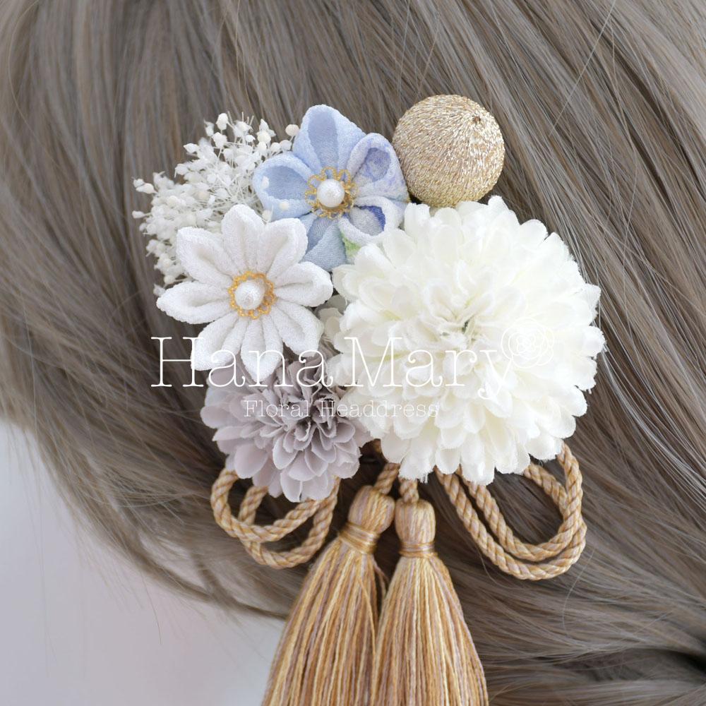 マムとつまみ細工【清楚】卒業式 成人式 髪飾り