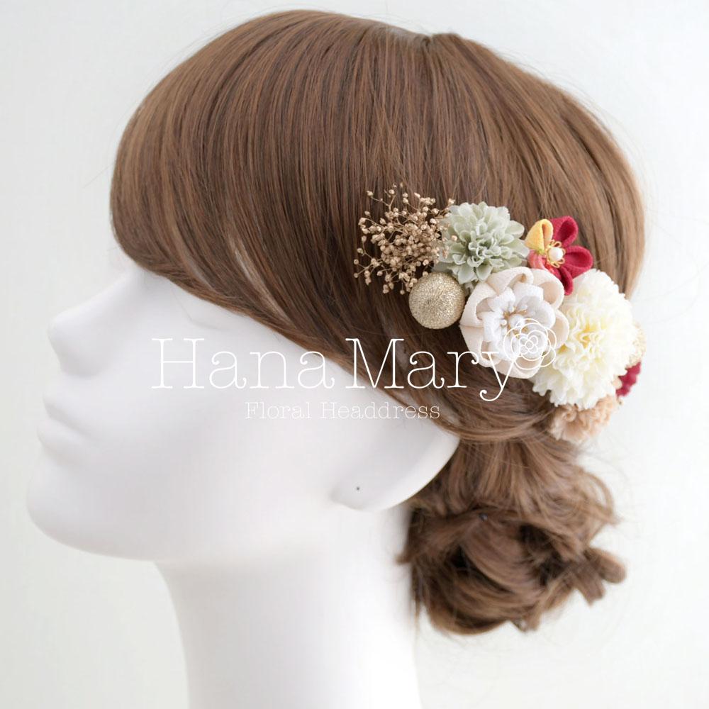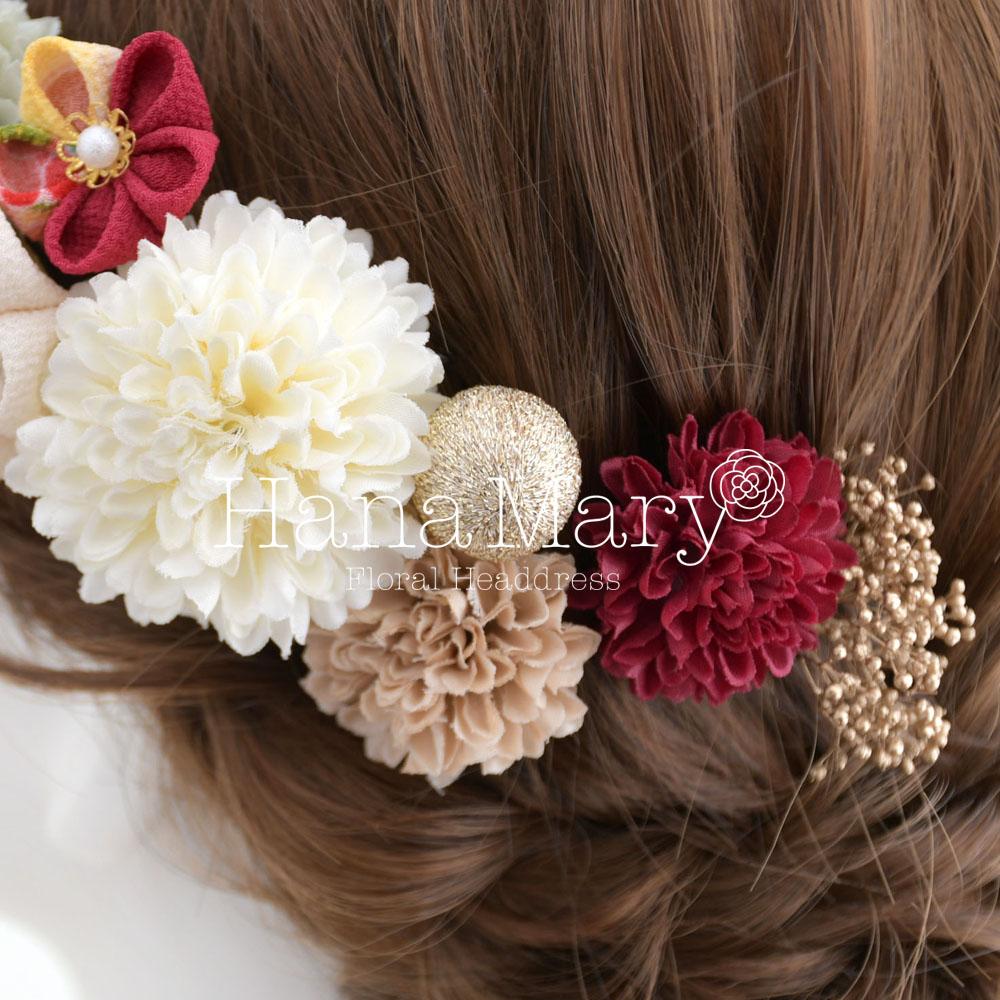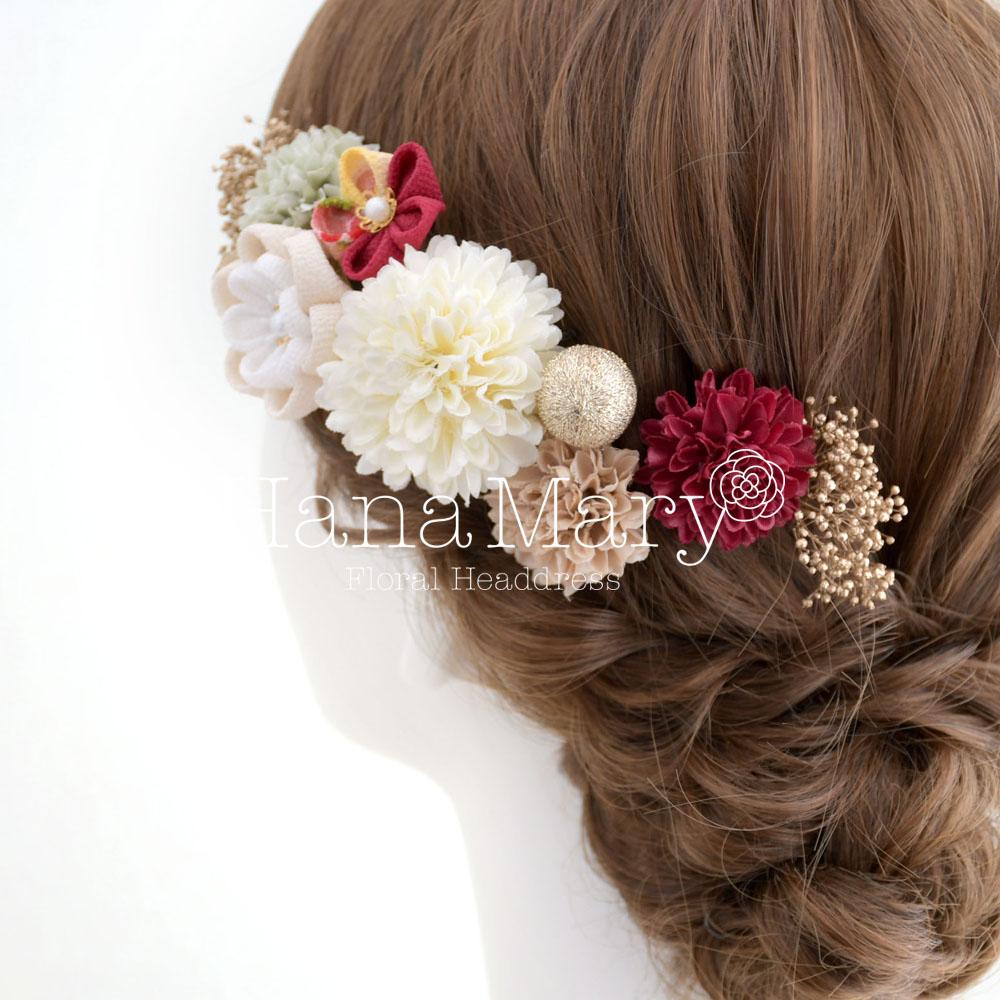 マムとつまみ細工のヘアブーケ 成人式 卒業式 髪飾り