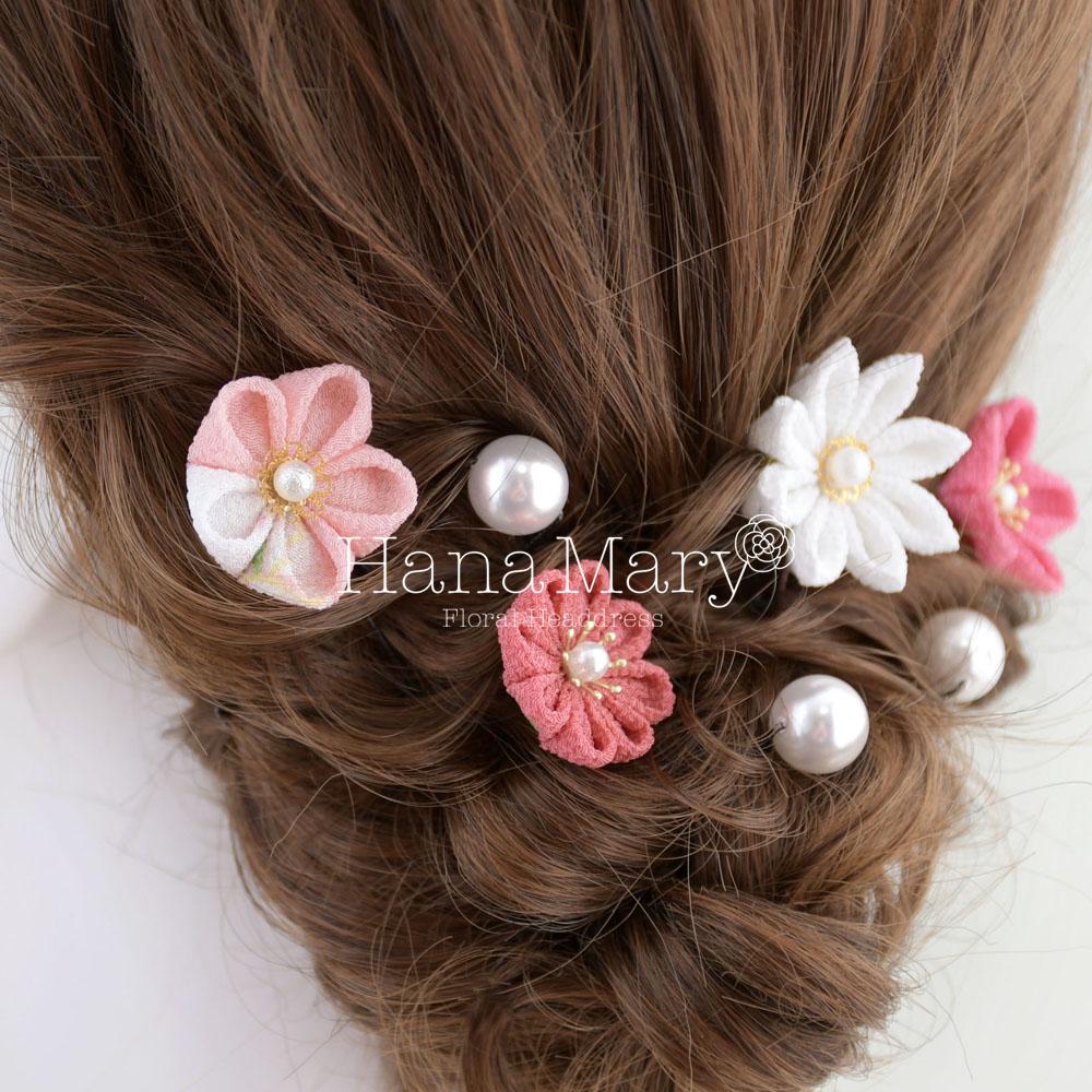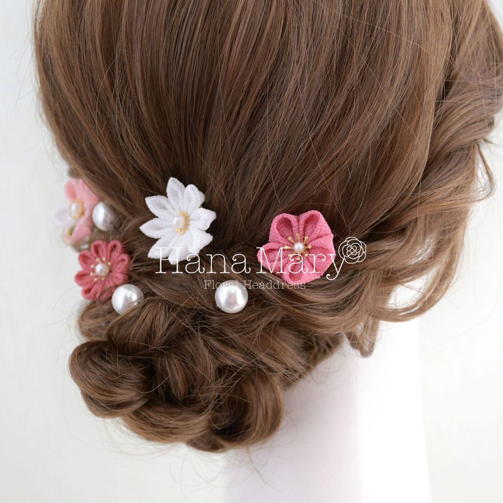 つまみ細工をちりばめて【ピンク】卒業式 七五三 成人式 振袖 袴 髪飾り 着物
