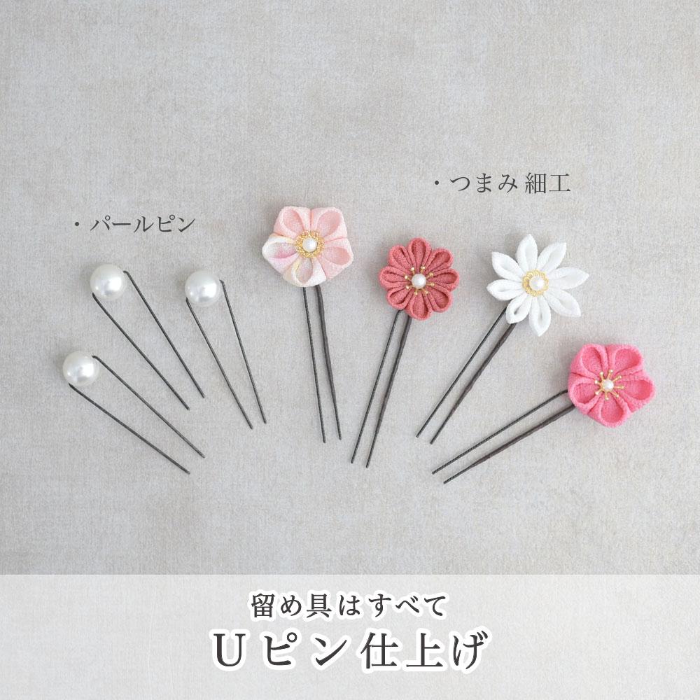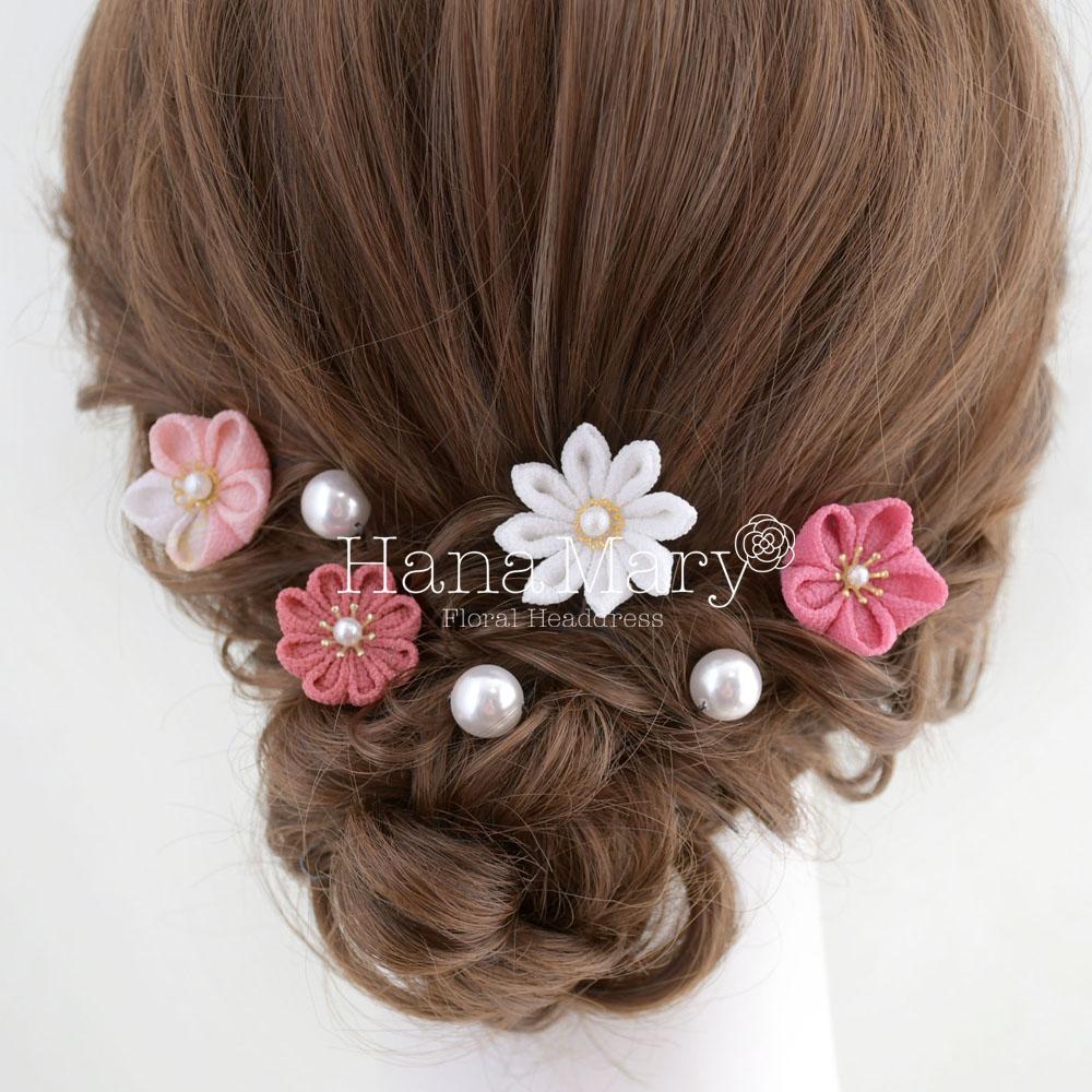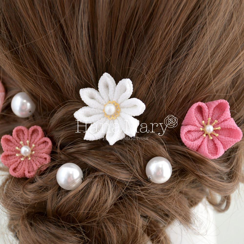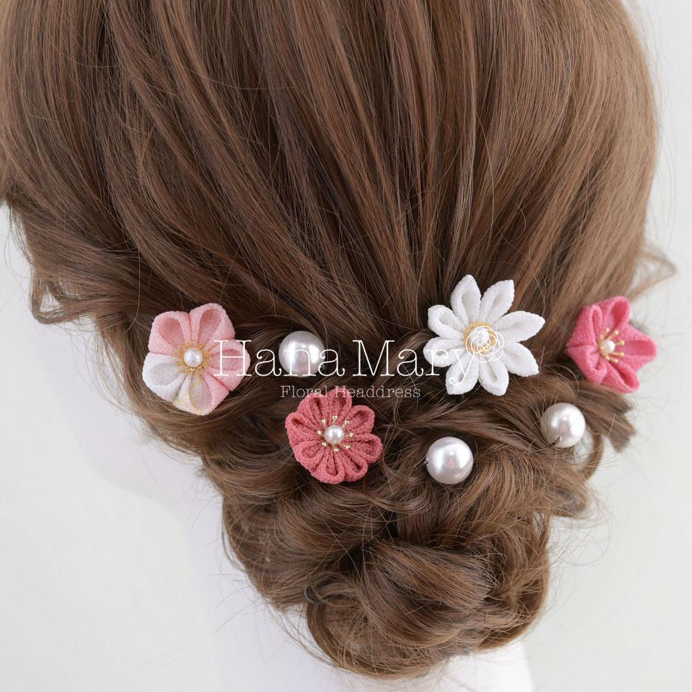 その日のヘアスタイルによって自由に一輪一輪配置できます。お花の数が多い場合でも、アメピンを追加して簡単にしっかりと固定できます。