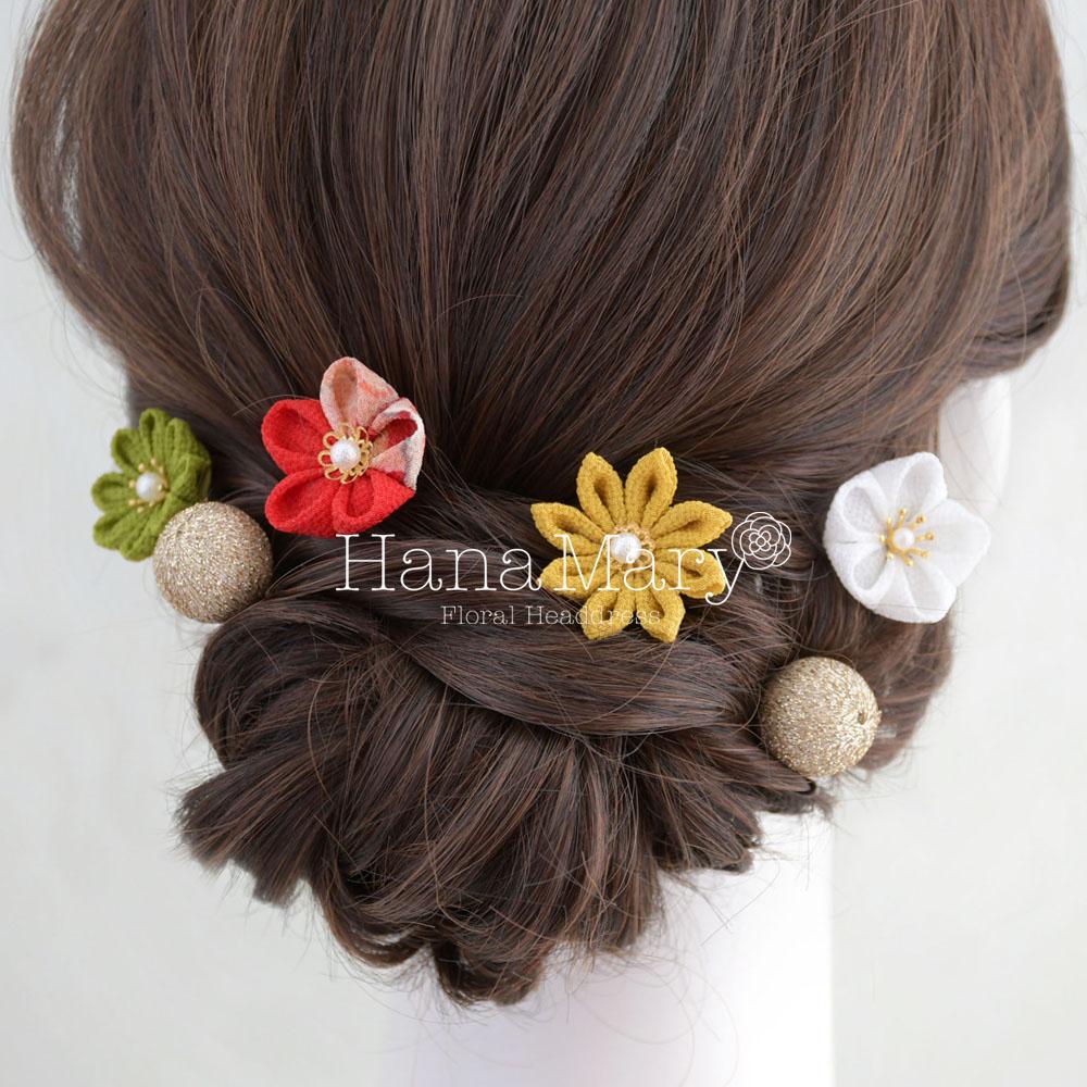 つまみ細工をちりばめて【和色彩】卒業式 七五三 成人式 結婚式 振袖 袴 髪飾り 着物