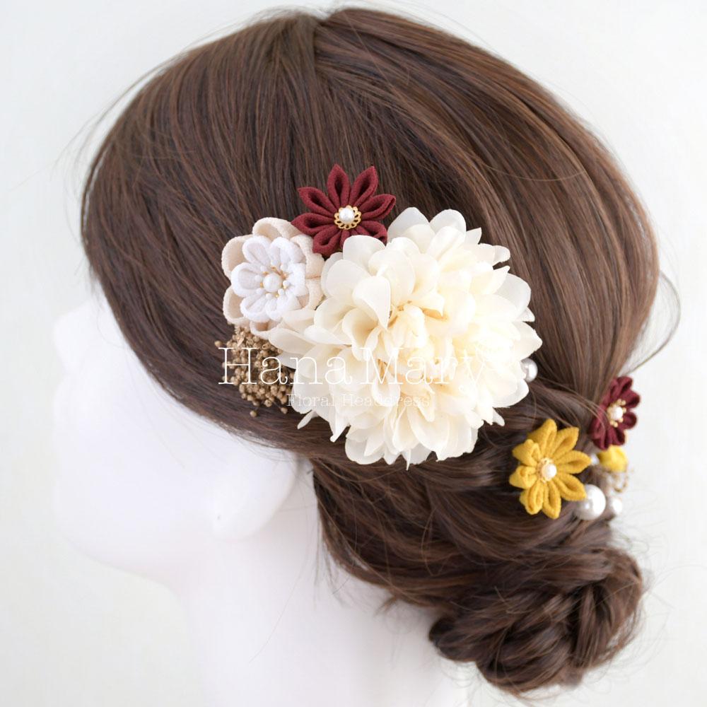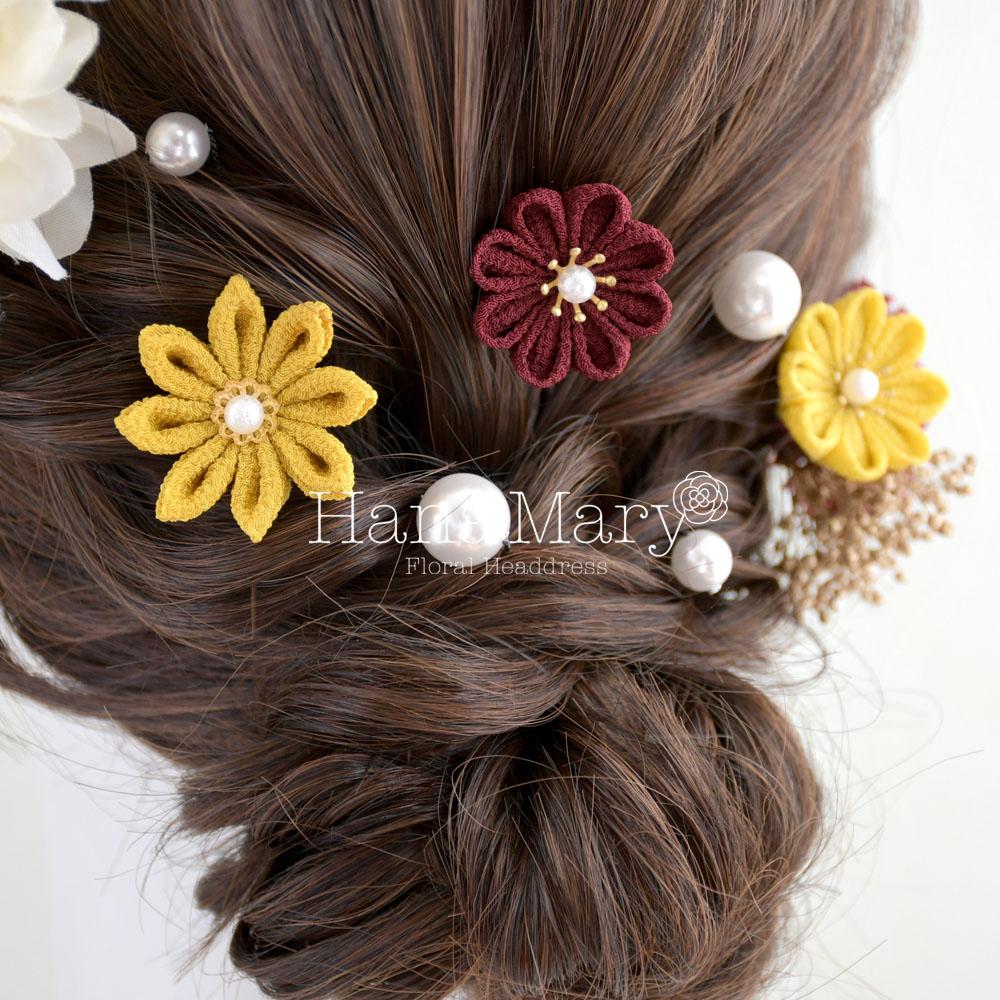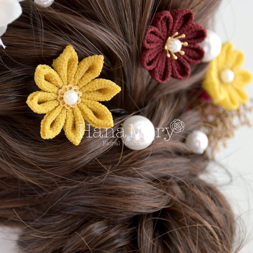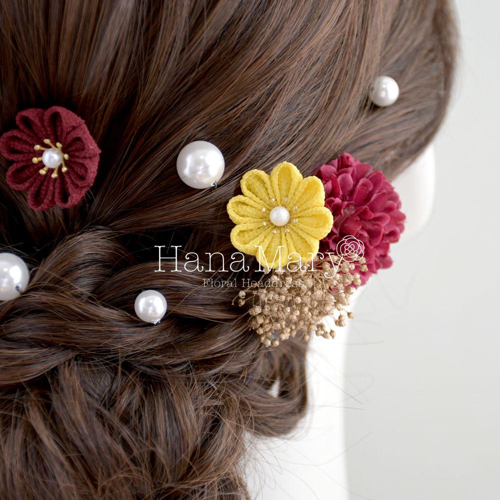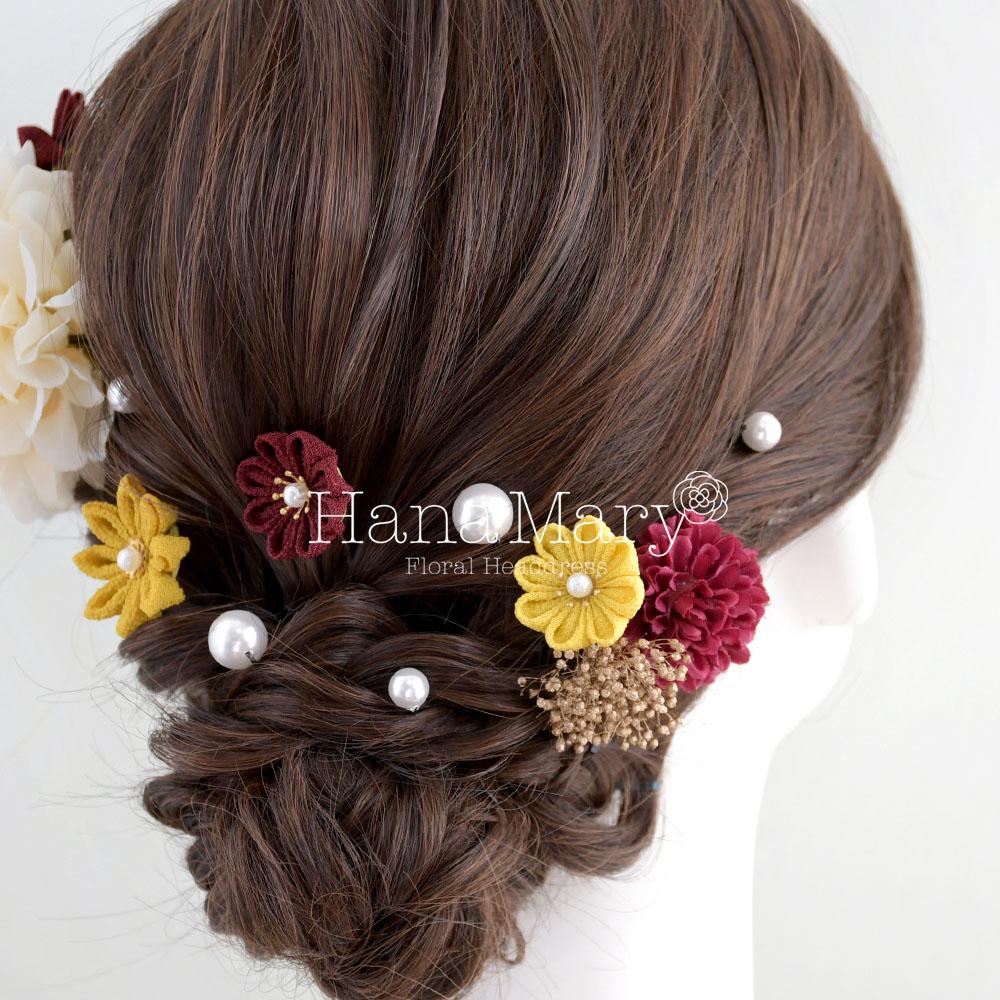 HanaMaryの髪飾りは生花をリアルに再現したアートフラワーと呼ばれるハイクオリティーな造花を使用しています。耐久性に優れ、成人式・卒業式やウェディングなどに何度でも繰り返し使用することができます。