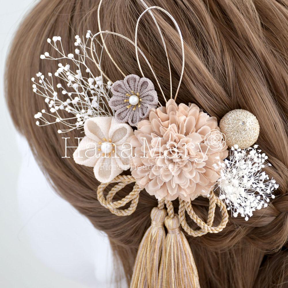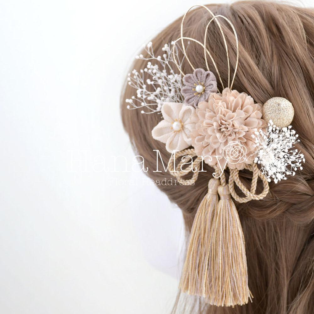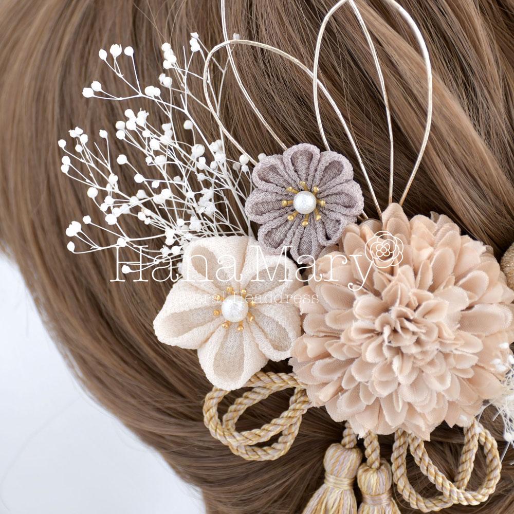 卒業式の髪飾り【ベージュ】成人式 結婚式 振袖 袴 髪飾り 着物 和装