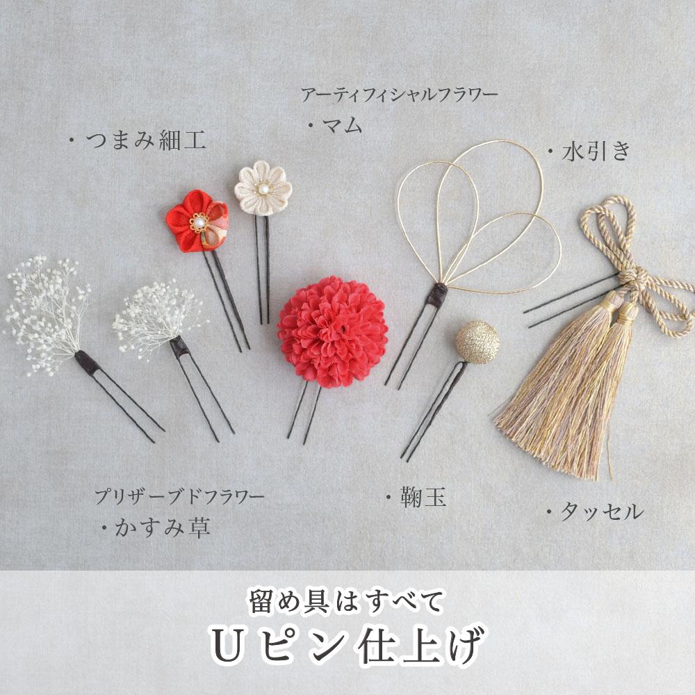 ◉お花やパーツは全てUピンに、それぞれ独立して取り付けてあります。