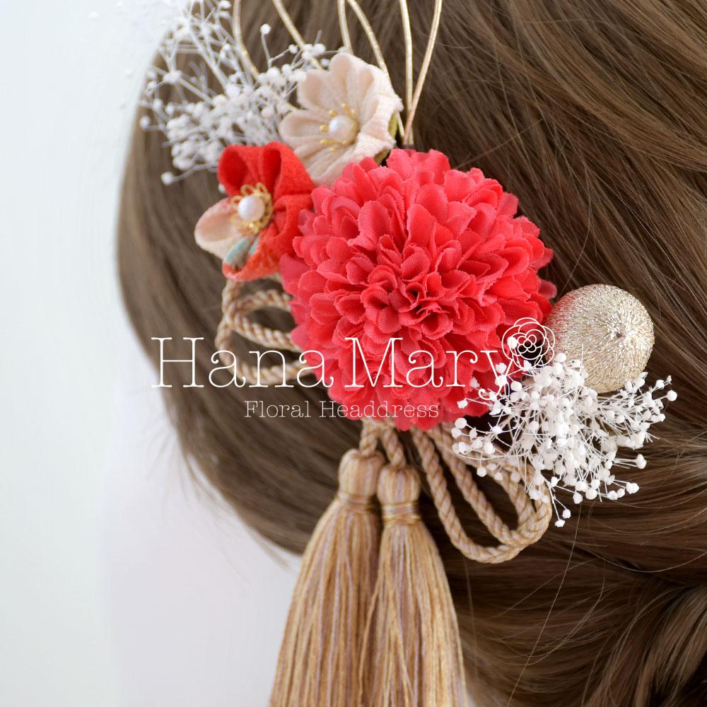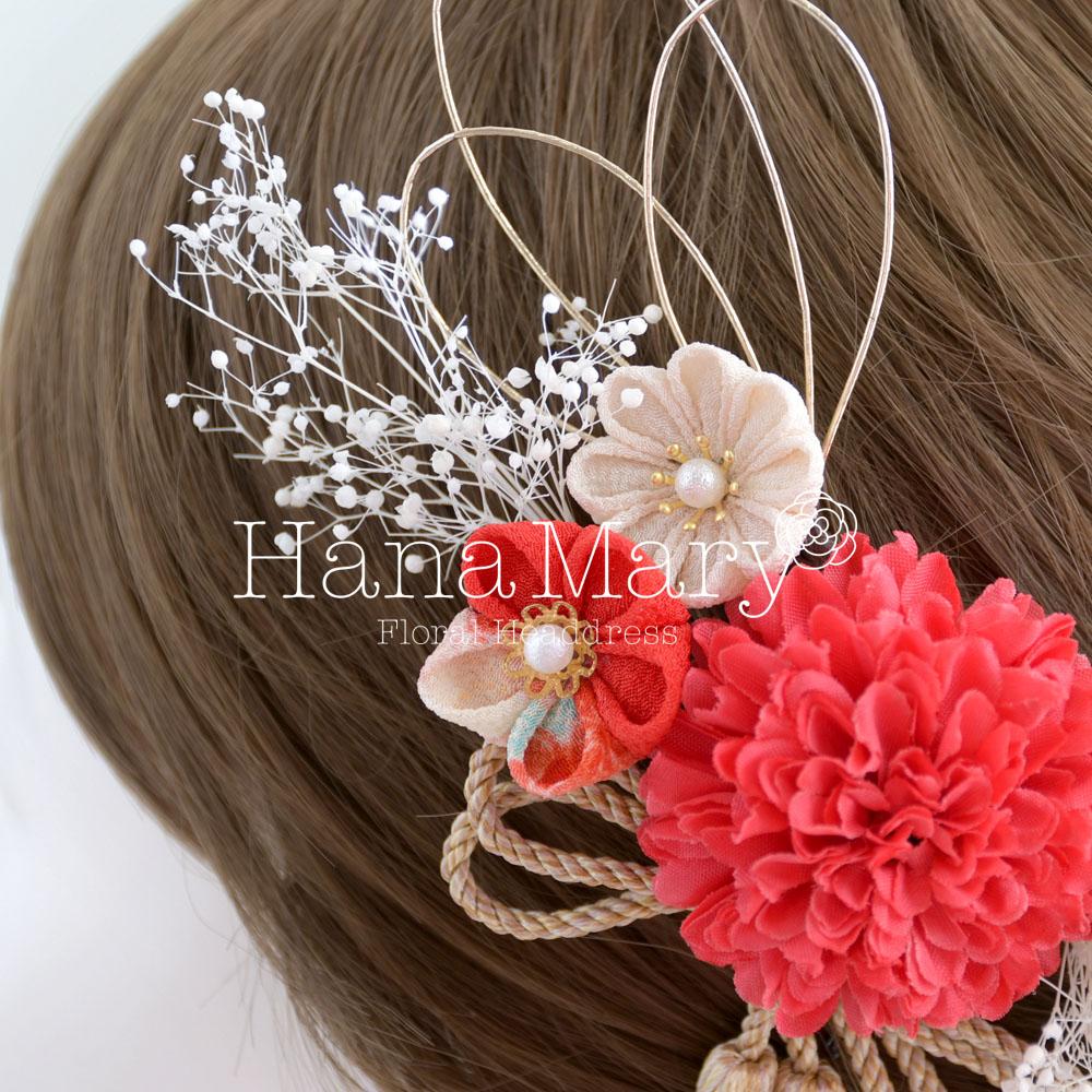 HanaMaryの髪飾りは生花をリアルに再現したアートフラワーと呼ばれるハイクオリティーな造花を使用しています。耐久性に優れ、成人式・卒業式やウェディングなどに何度でも繰り返し使用することができます。