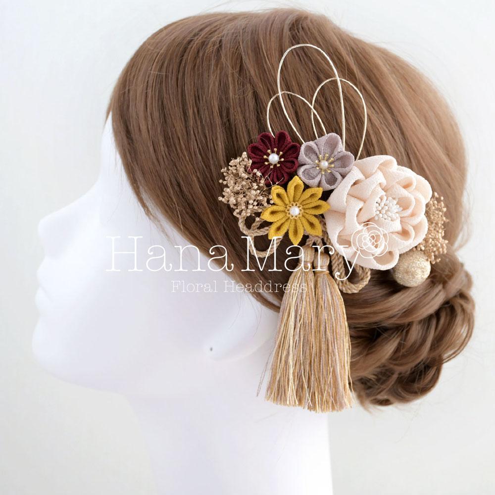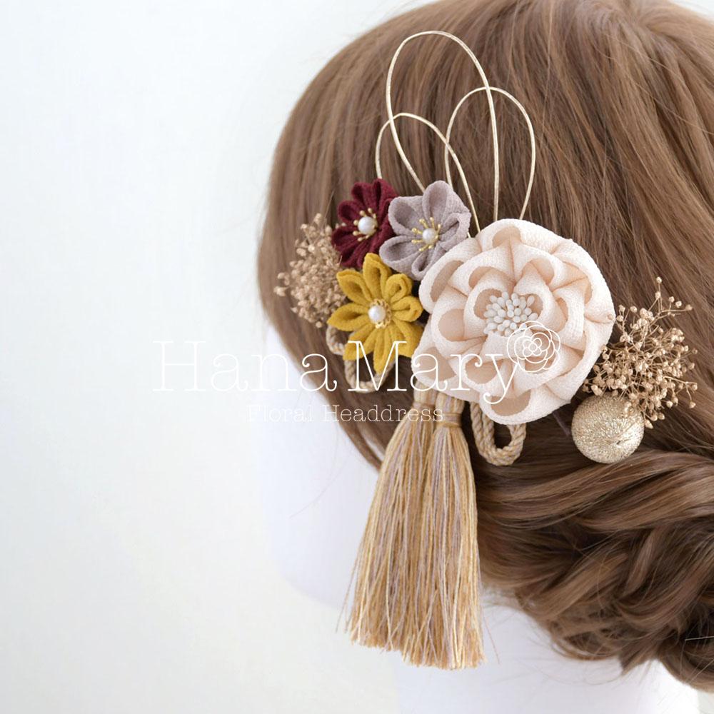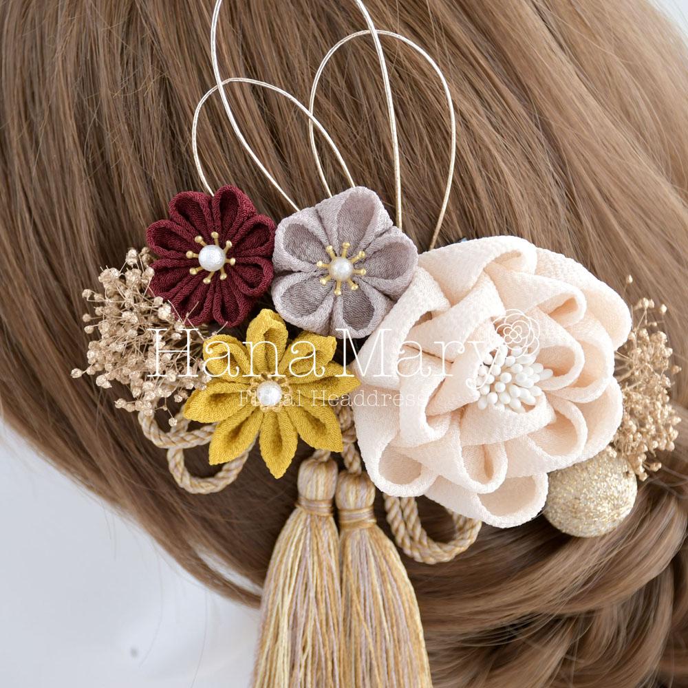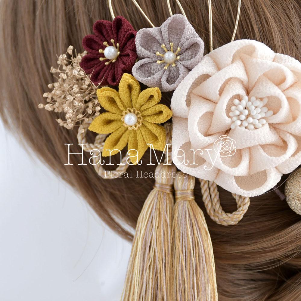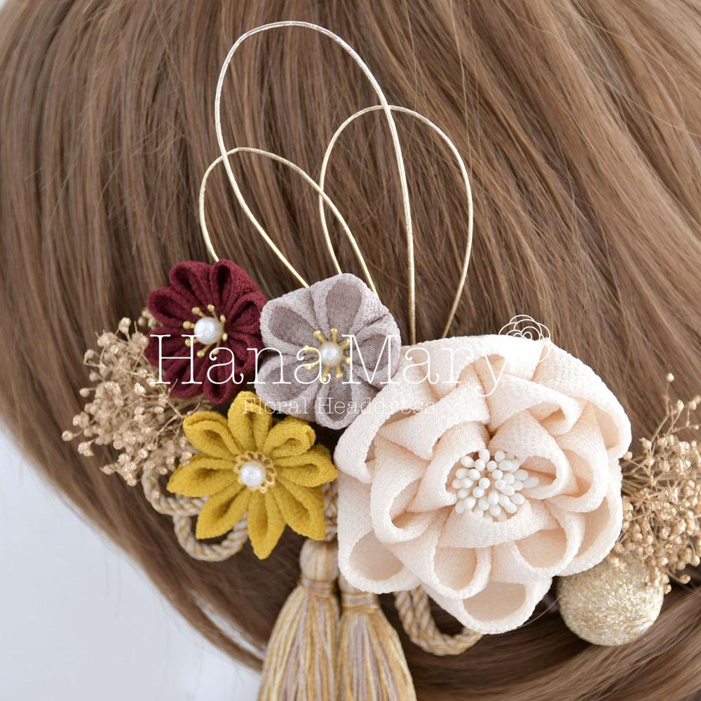 つまみ細工で可愛らしく【レトロモダン】卒業式 成人式 七五三 髪飾り振袖 袴 着物