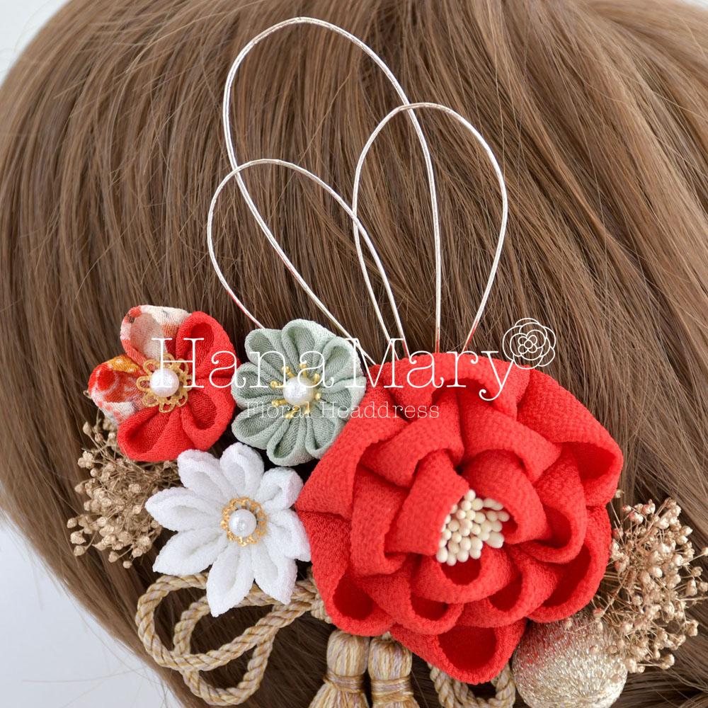 つまみ細工で可愛らしく【和モダン】卒業式 髪飾り 成人式 髪飾り