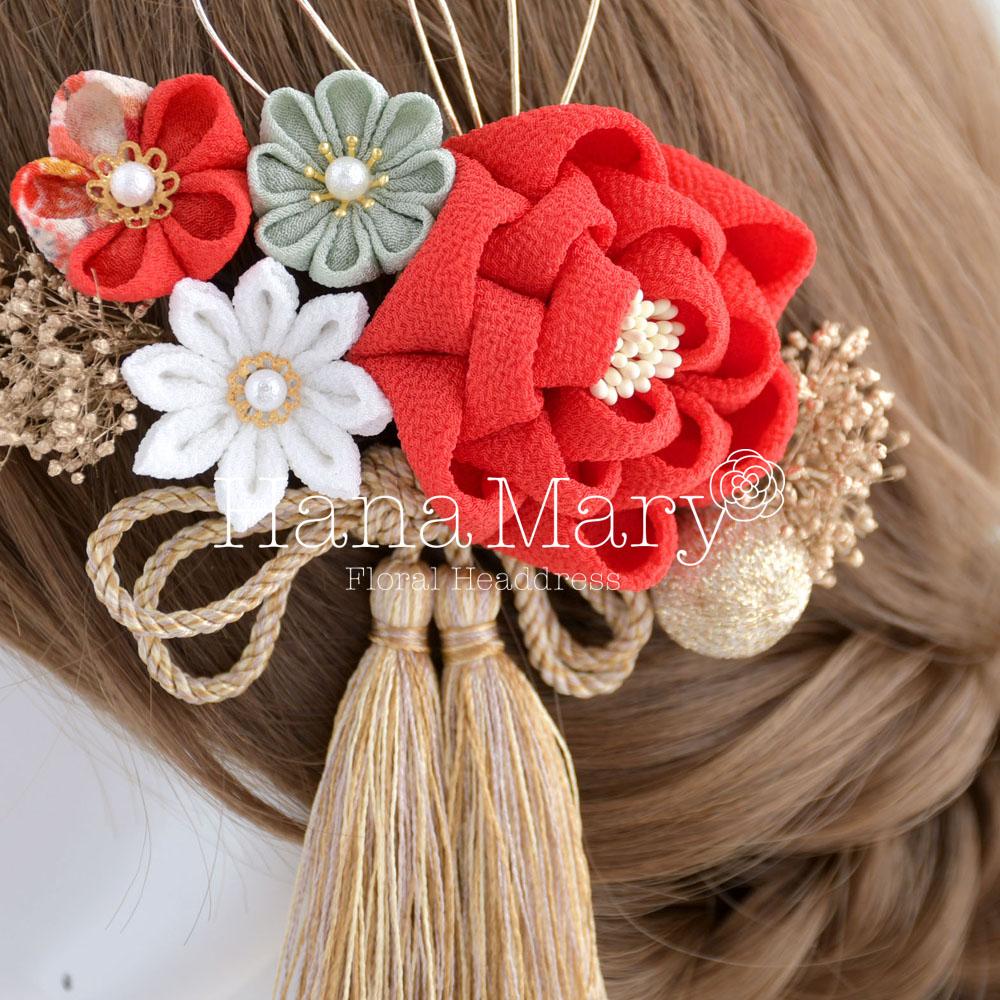 HanaMaryの髪飾りは生花をリアルに再現したアートフラワーと呼ばれるハイクオリティーな造花を使用しています。耐久性に優れ、成人式・卒業式やウェディングなどに何度でも繰り返し使用することができます。