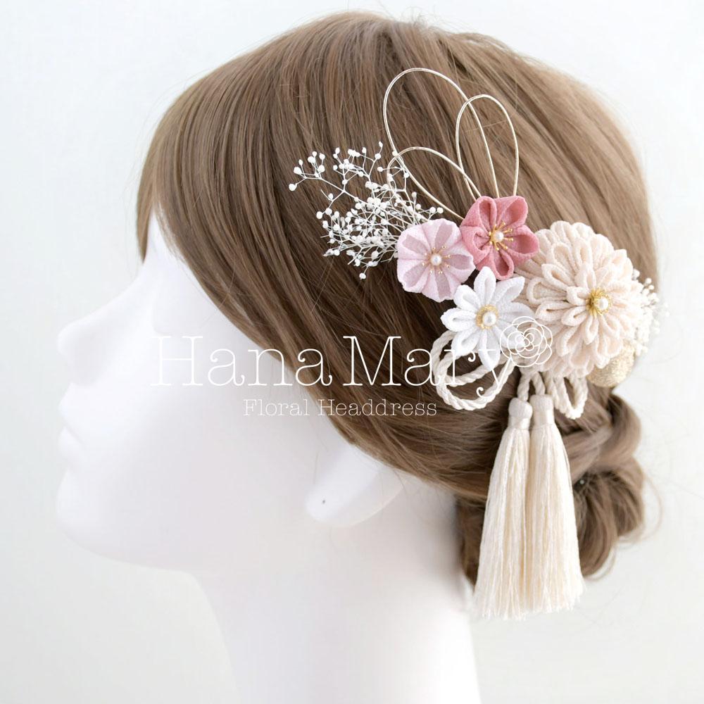 HanaMaryの髪飾りは生花をリアルに再現したアートフラワーと呼ばれるハイクオリティーな造花を使用しています。耐久性に優れ、成人式・卒業式やウェディングなどに何度でも繰り返し使用することができます。
