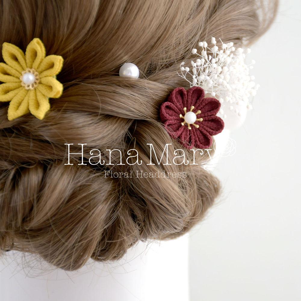 HanaMaryの髪飾りは生花をリアルに再現したアートフラワーと呼ばれるハイクオリティーな造花を使用しています。耐久性に優れ、成人式・卒業式やウェディングなどに何度でも繰り返し使用することができます。