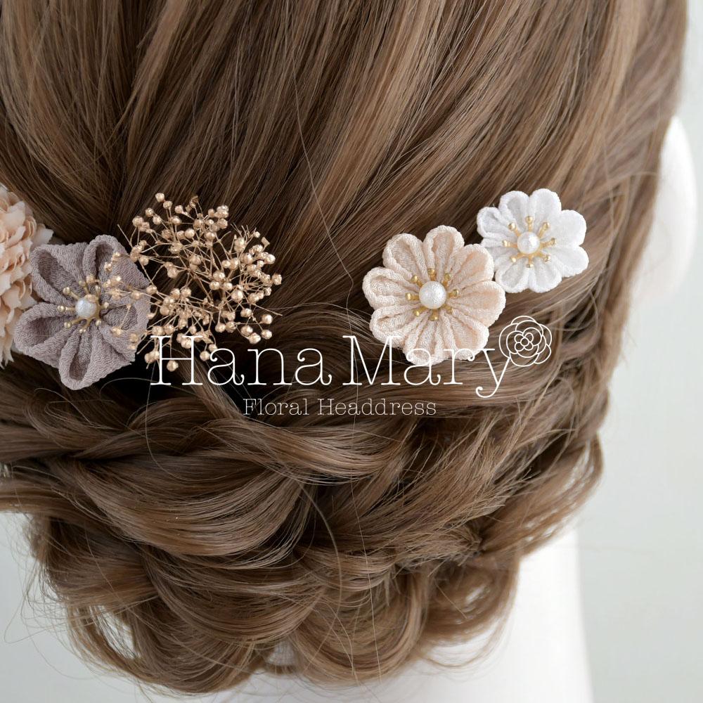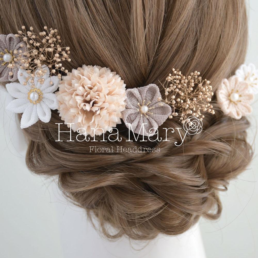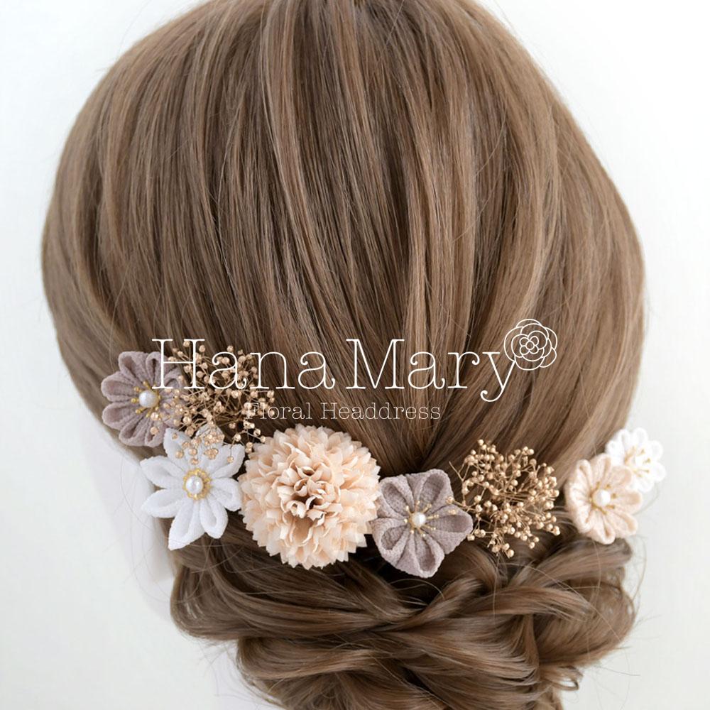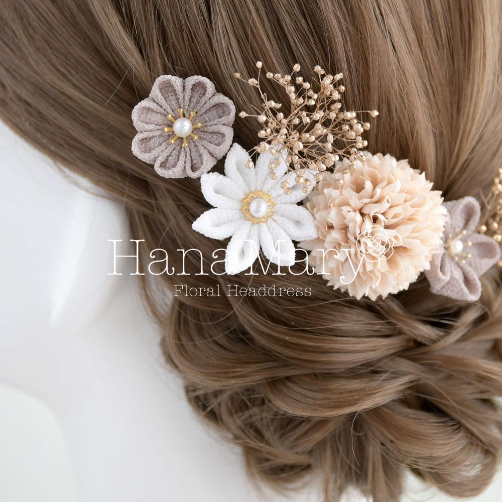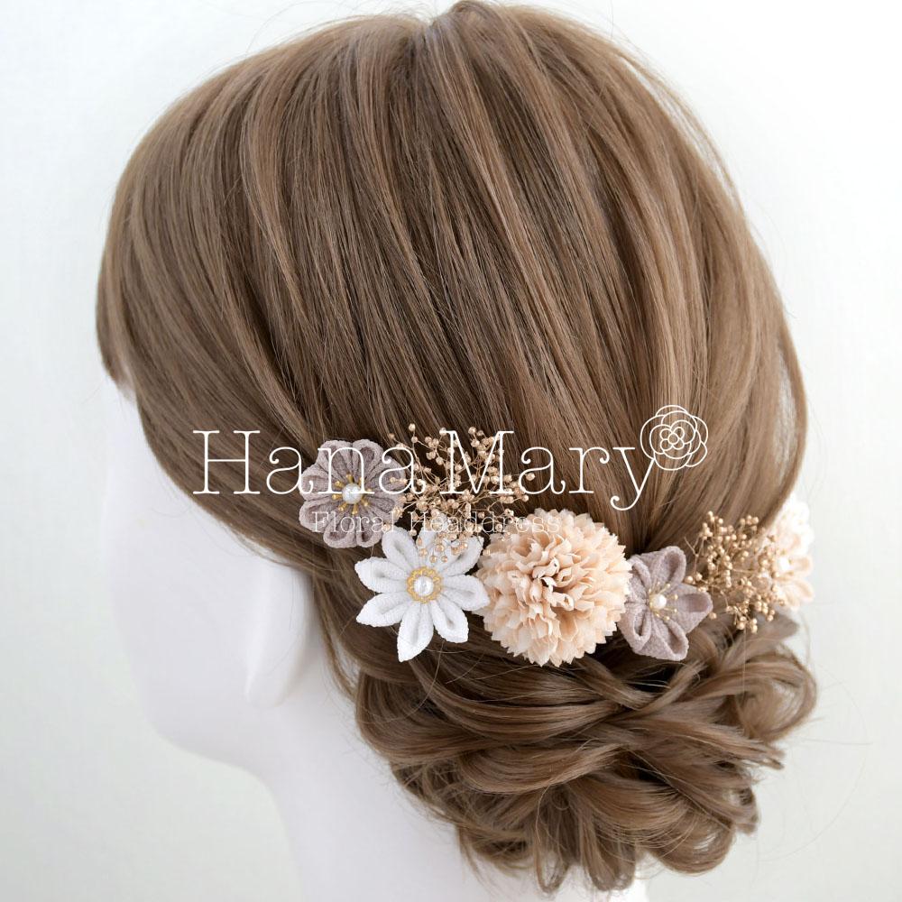 つまみ細工 髪飾り 卒業式 成人式 七五三 結婚式【淡色グレージュ】振袖 袴