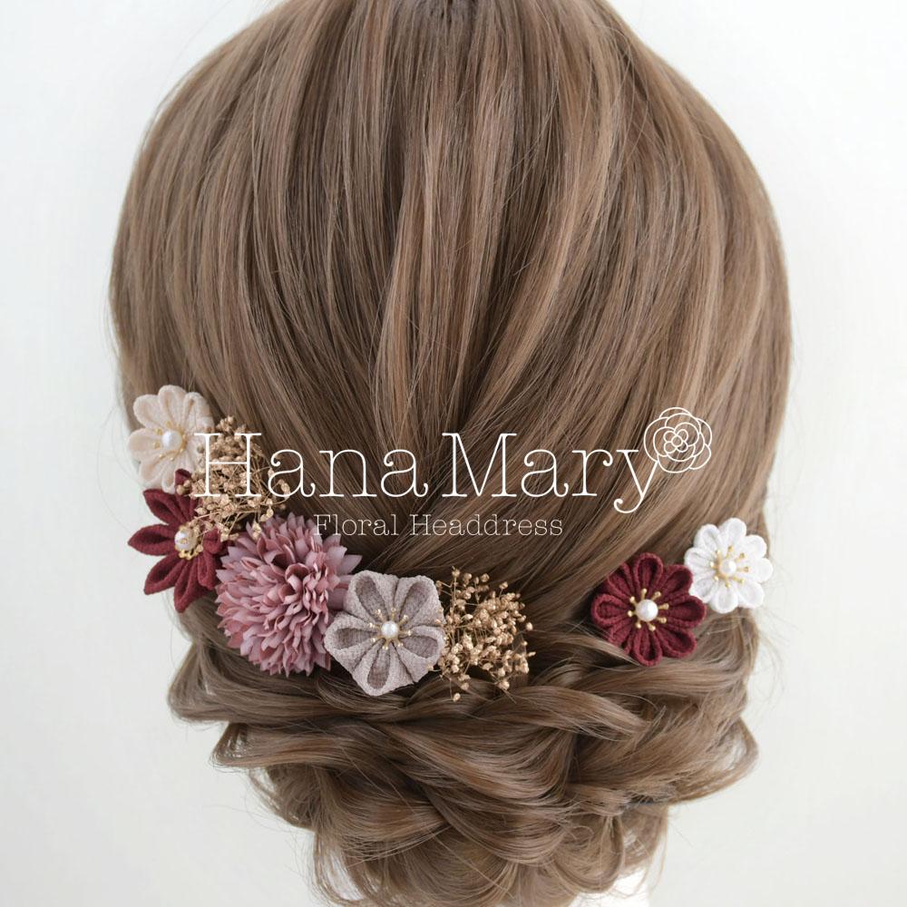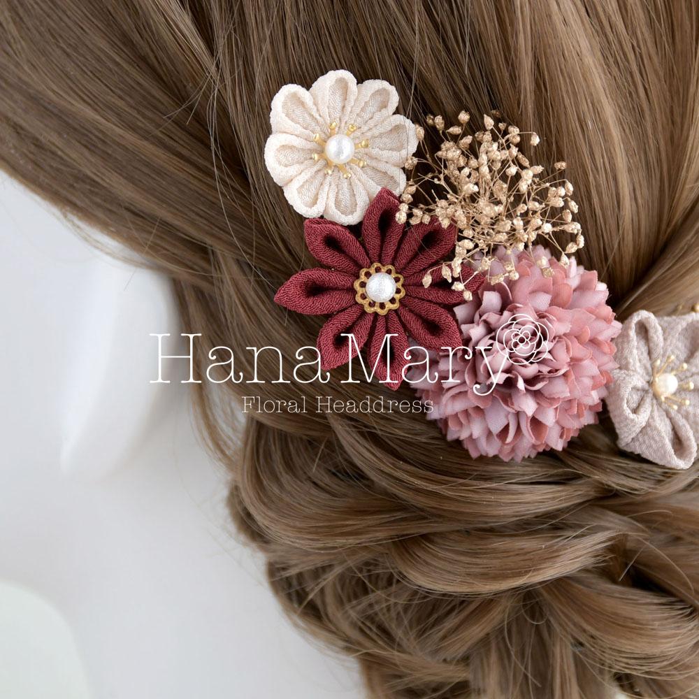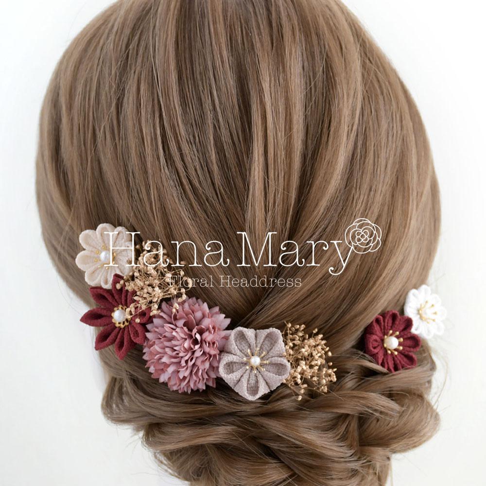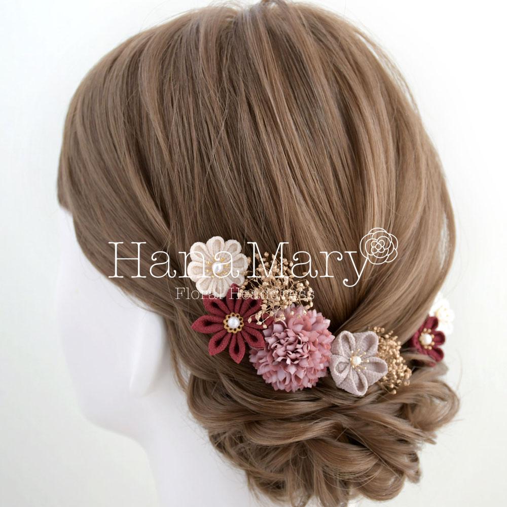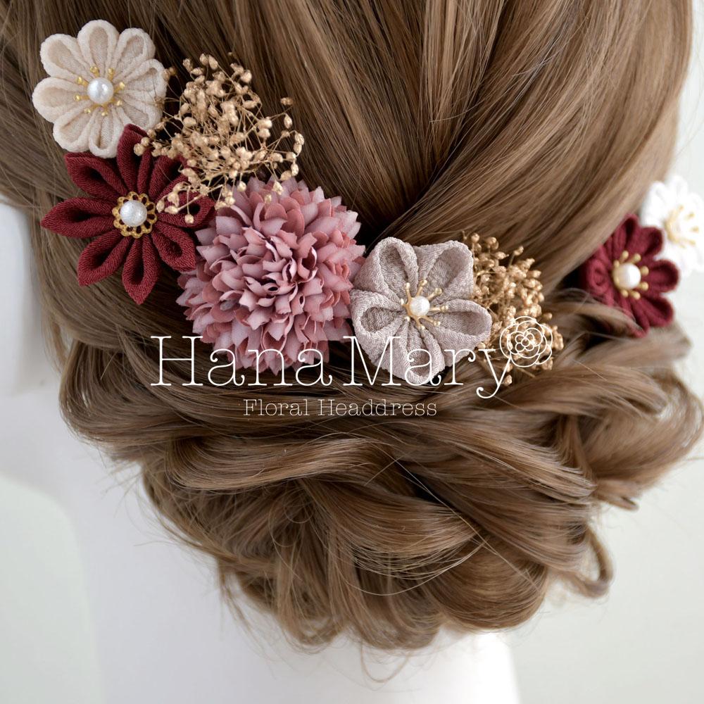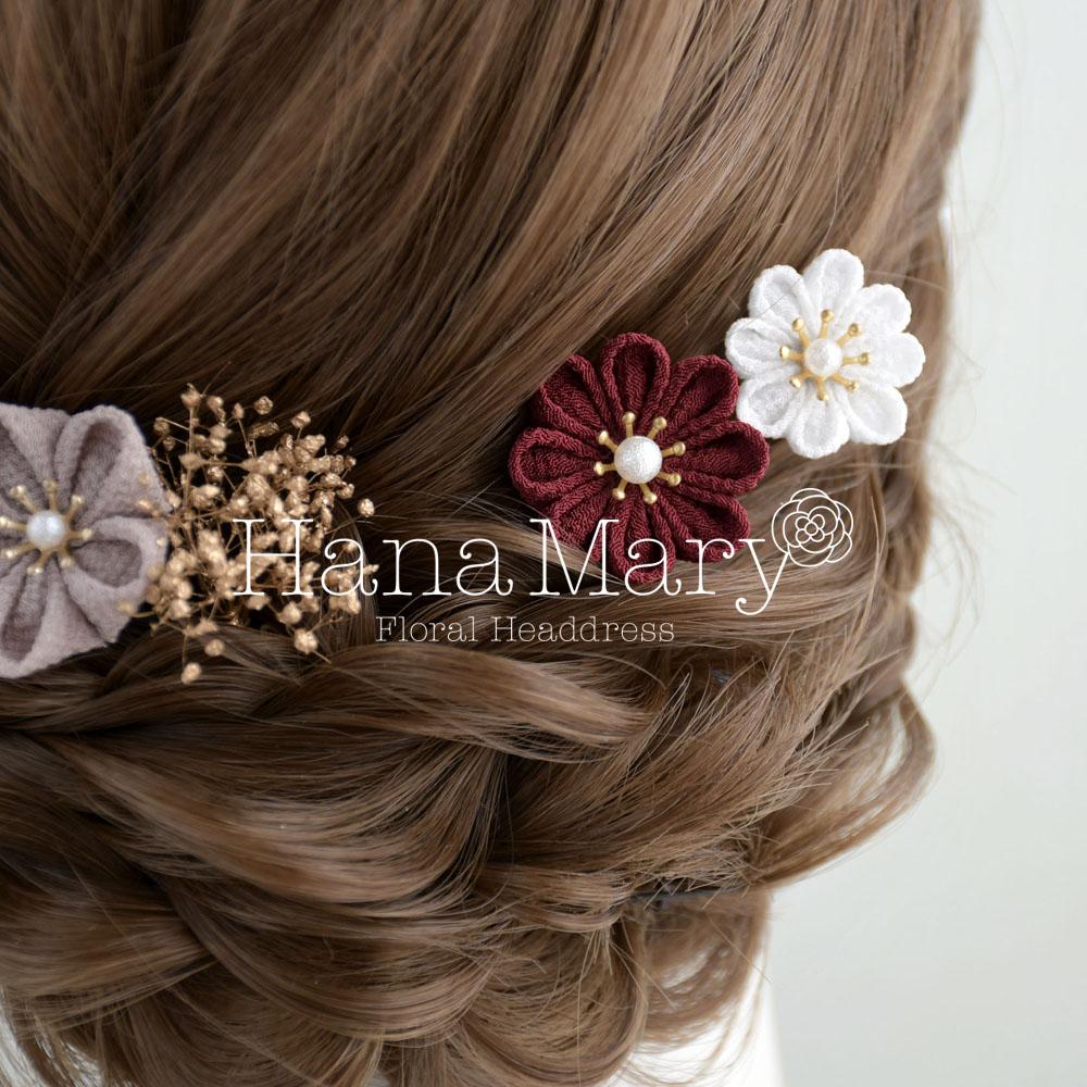 つまみ細工 髪飾り 卒業式 成人式 七五三 結婚式【ボルドーパープル】振袖 袴