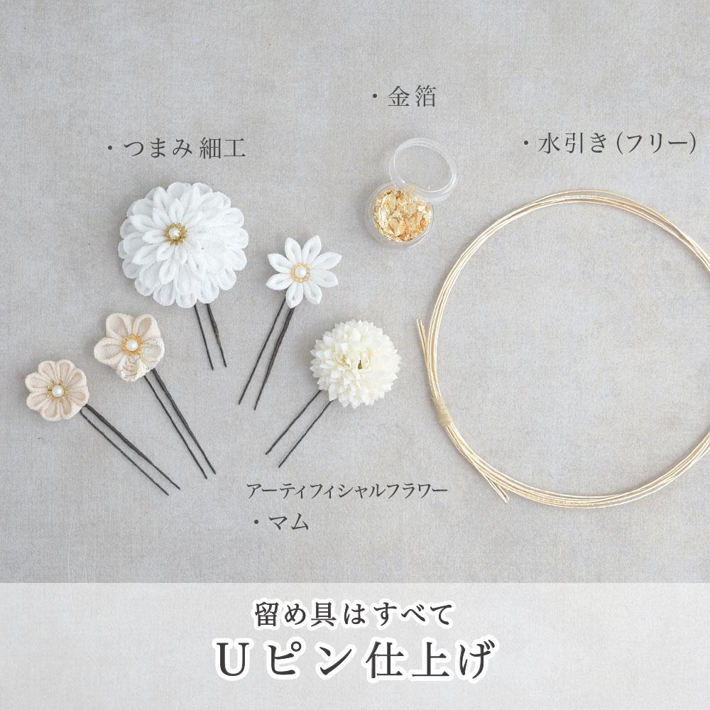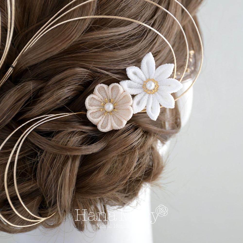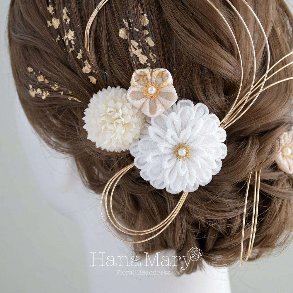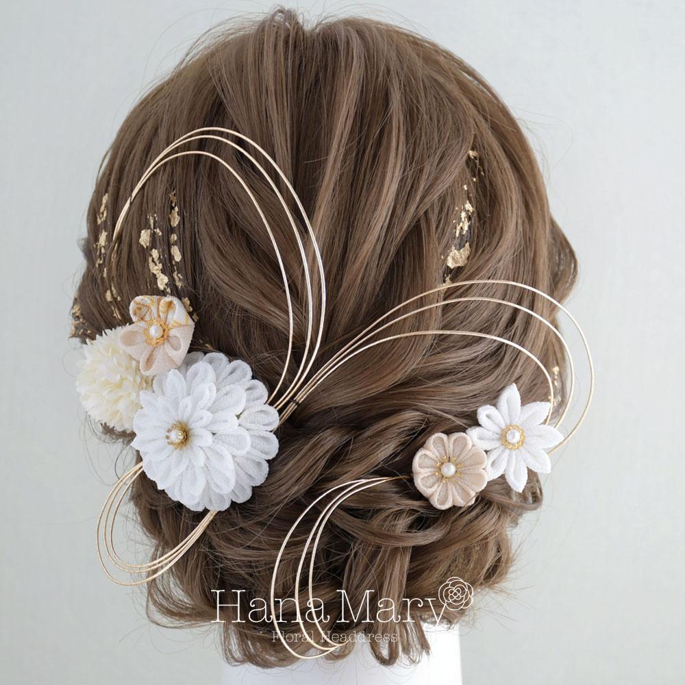 つまみ細工と水引きアレンジ 卒業式 成人式 結婚式【白】振袖 袴 髪飾り