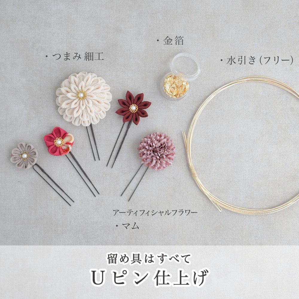 ◉つまみ細工やお花は一輪ずつ独立してUピンに取り付けてあります。