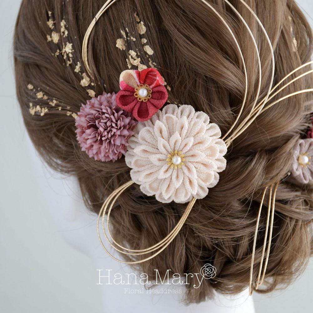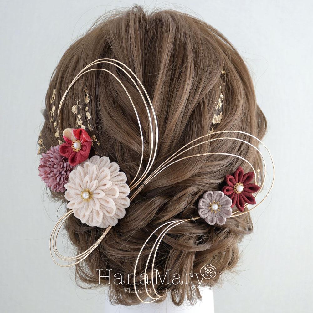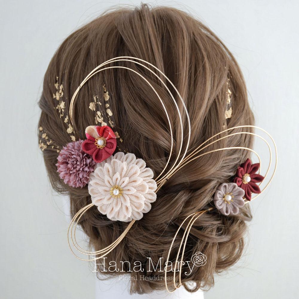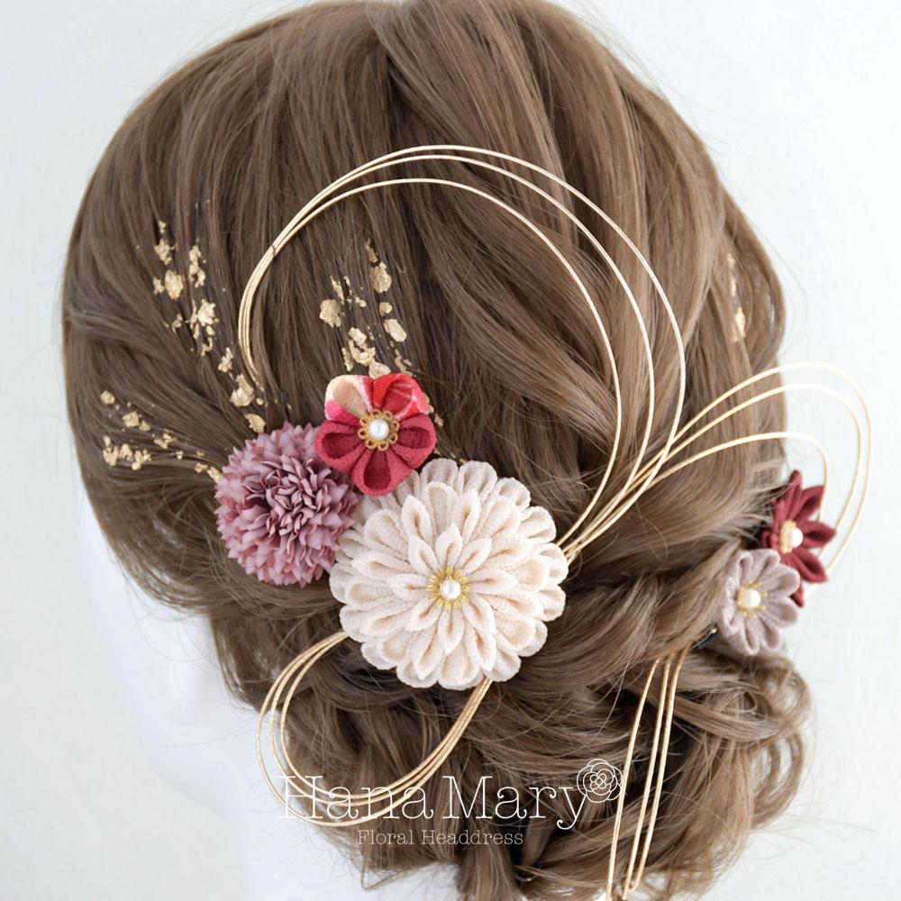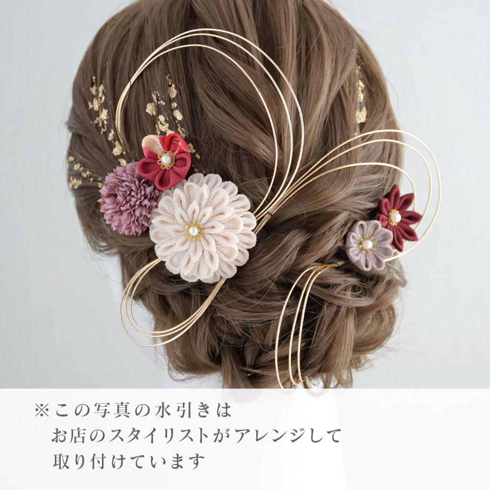 つまみ細工と水引きアレンジ 卒業式 成人式 結婚式【レトロモダン】振袖 袴 髪飾り