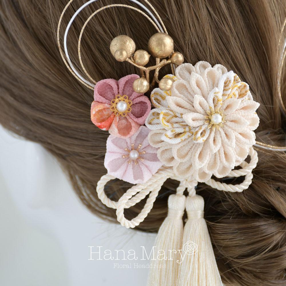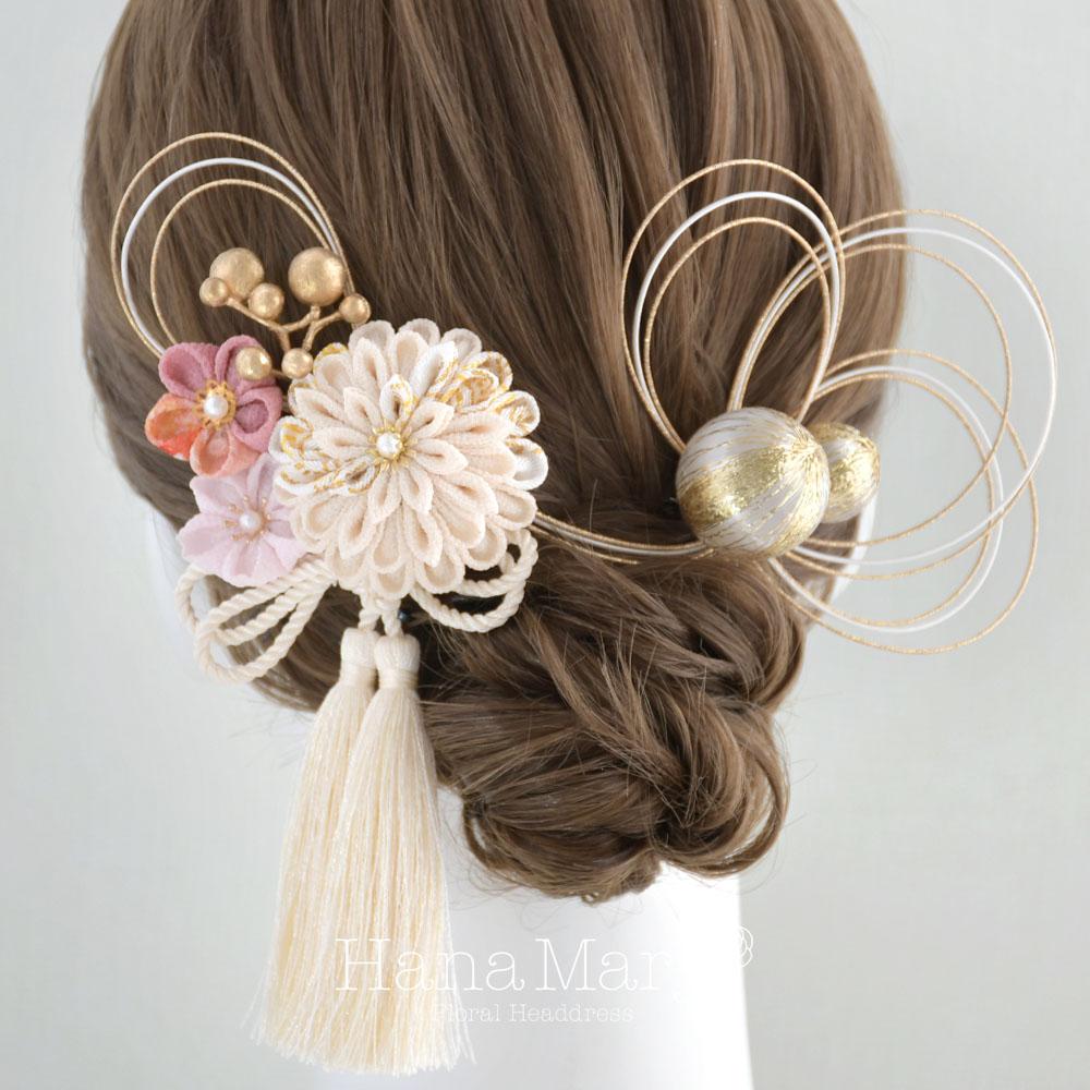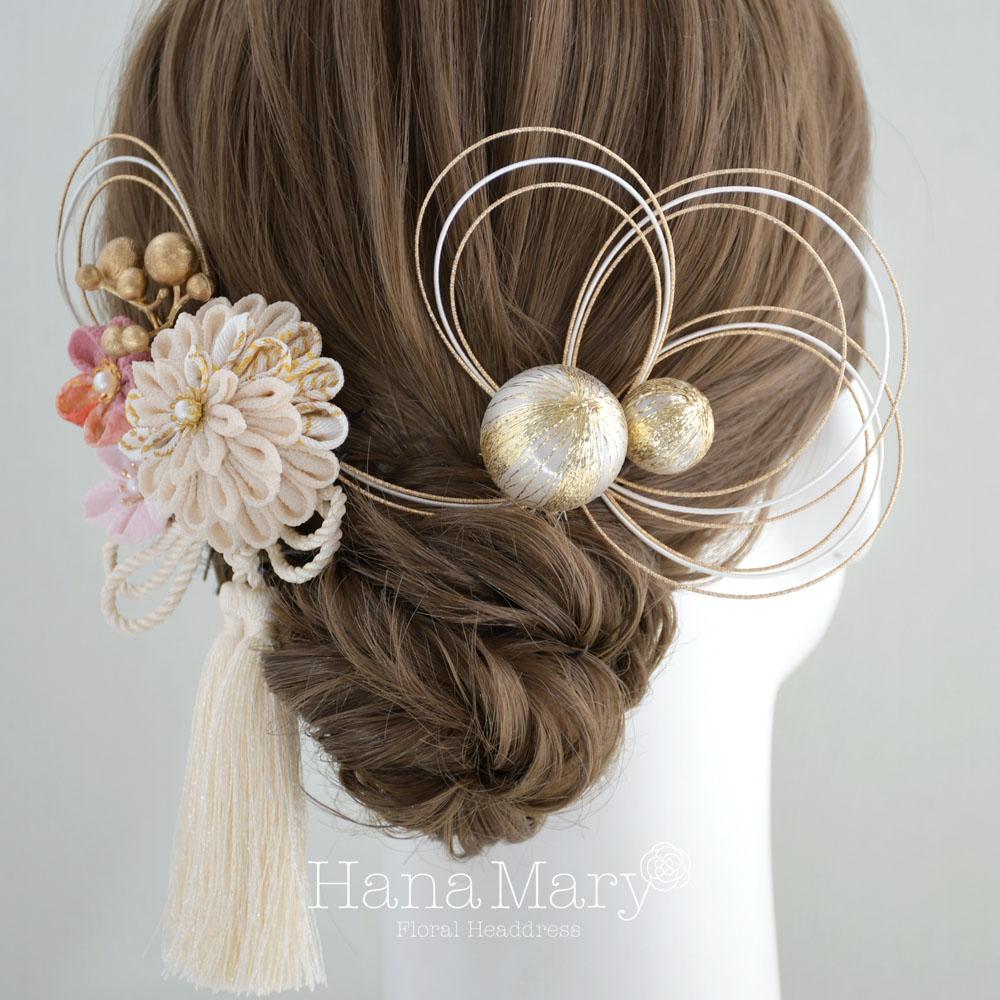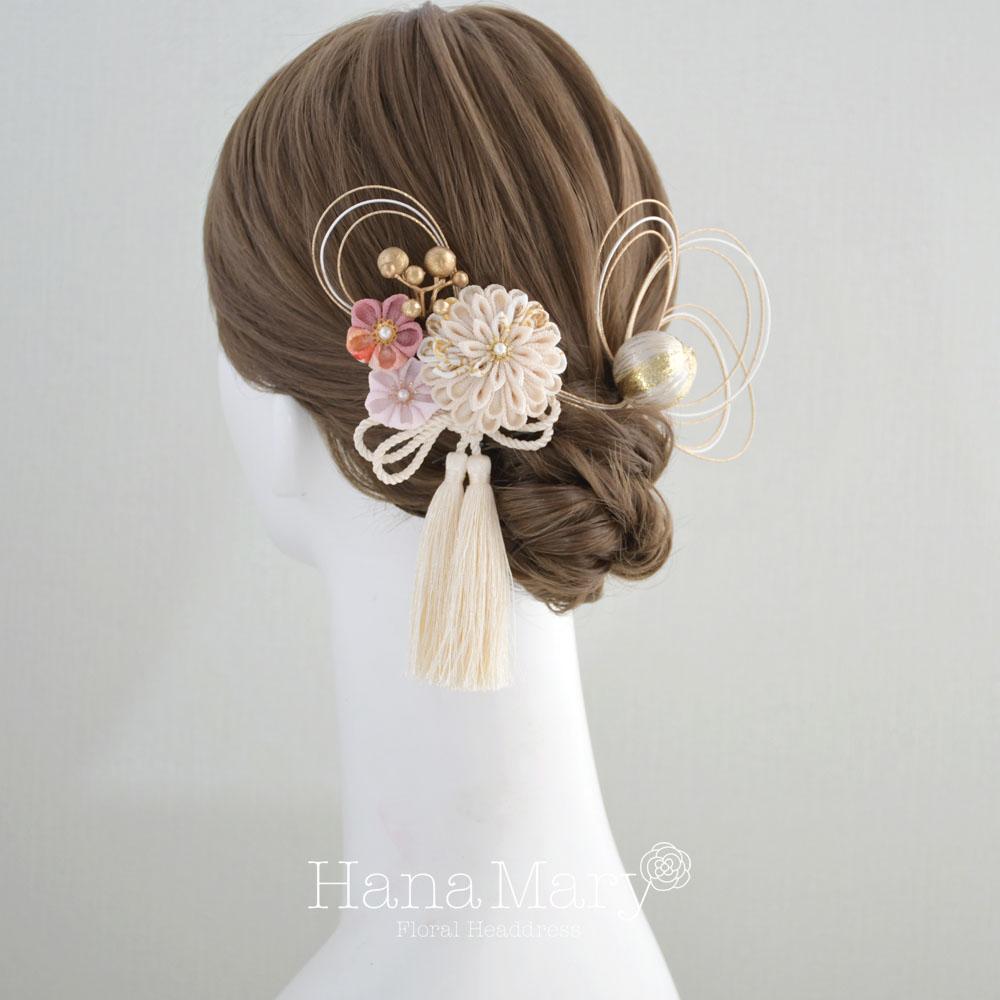 つまみ細工と鞠玉の髪飾り 卒業式 成人式 振袖 袴 着物 結婚式【桜色】白無垢