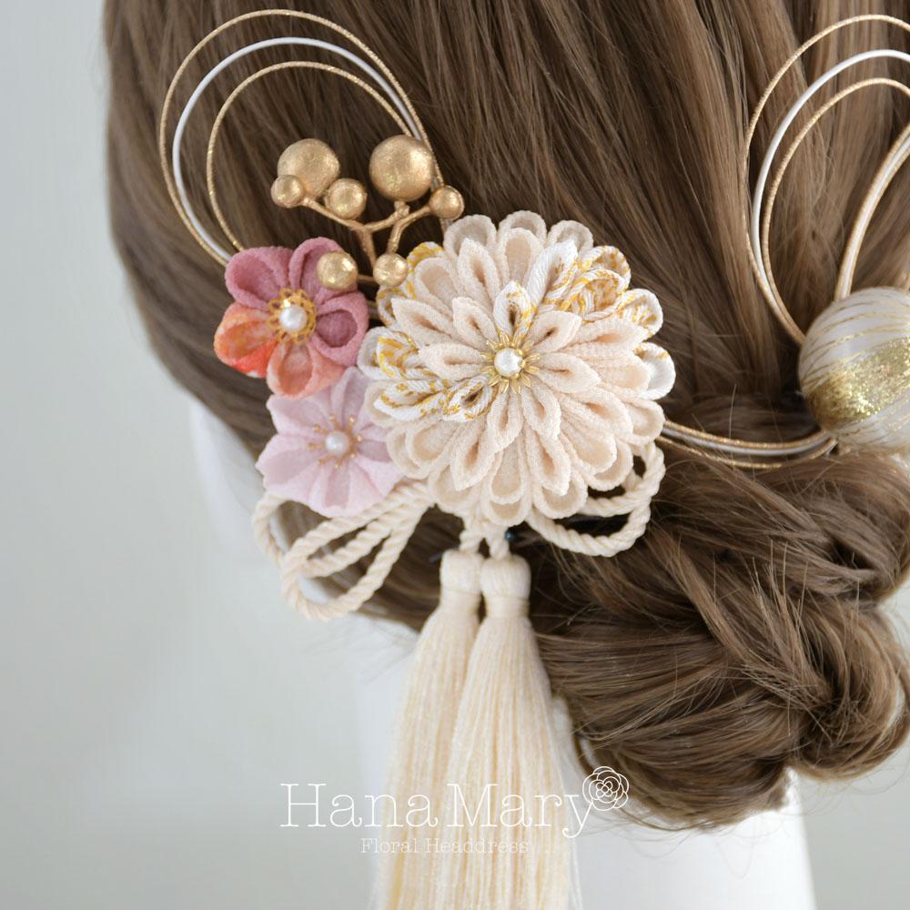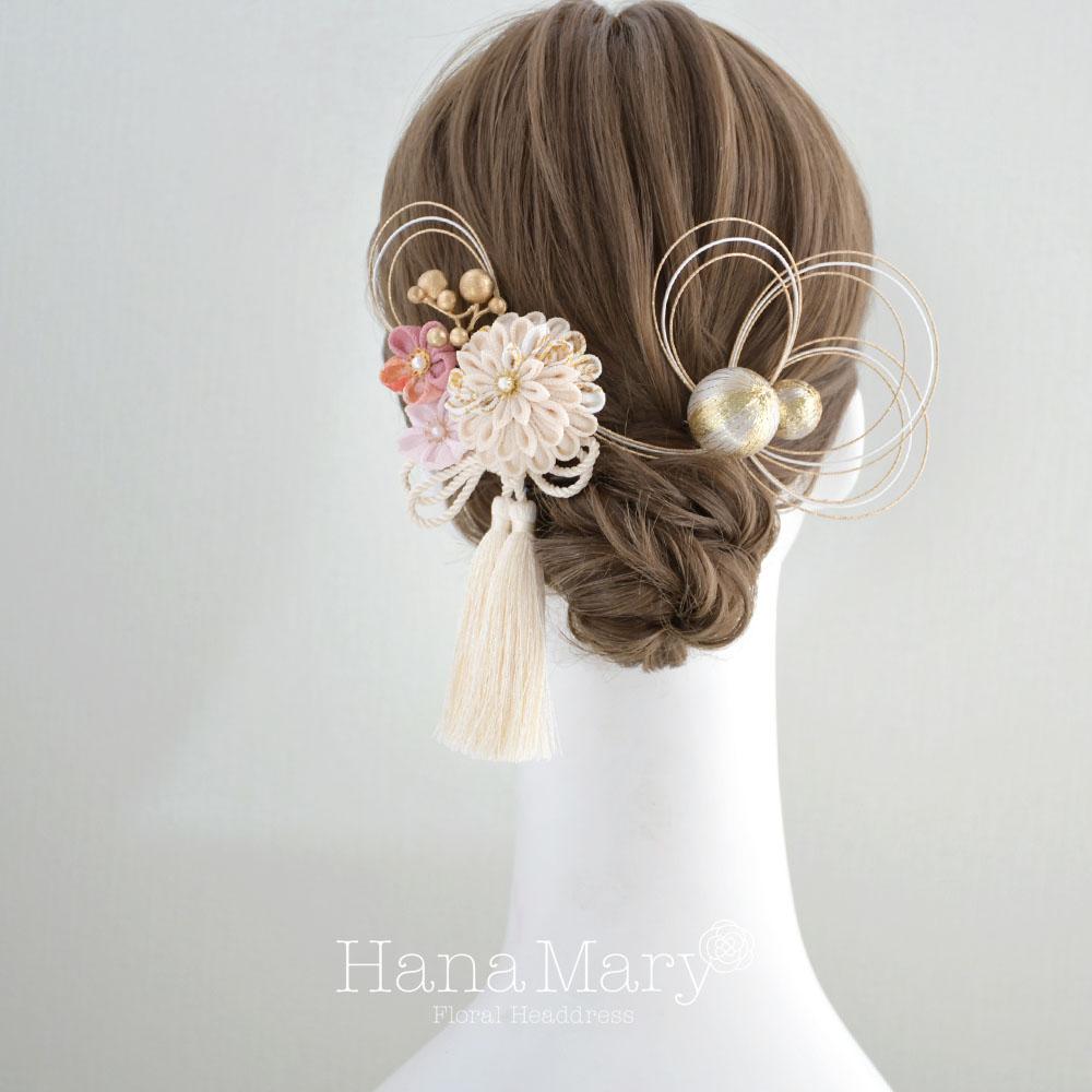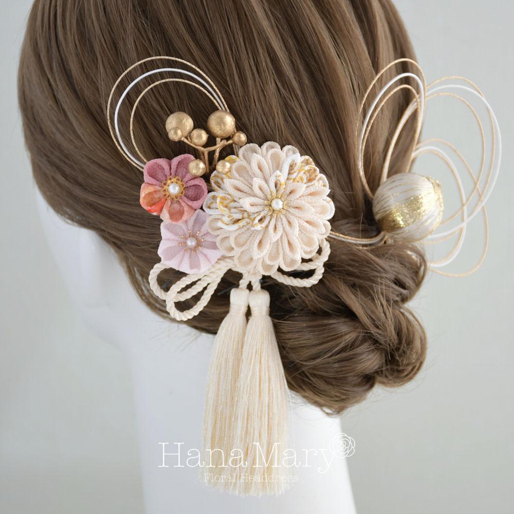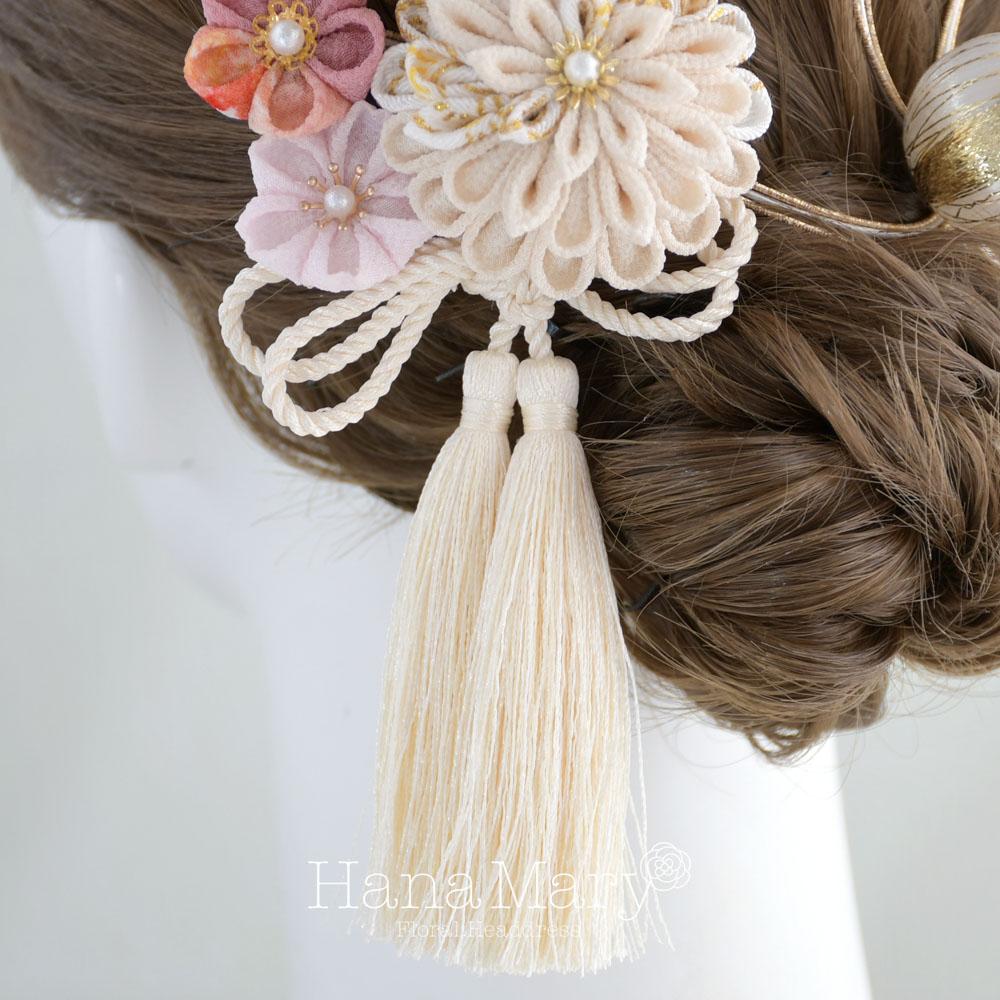 つまみ細工と鞠玉の髪飾り 卒業式 成人式 振袖 袴 着物 結婚式【桜色】白無垢