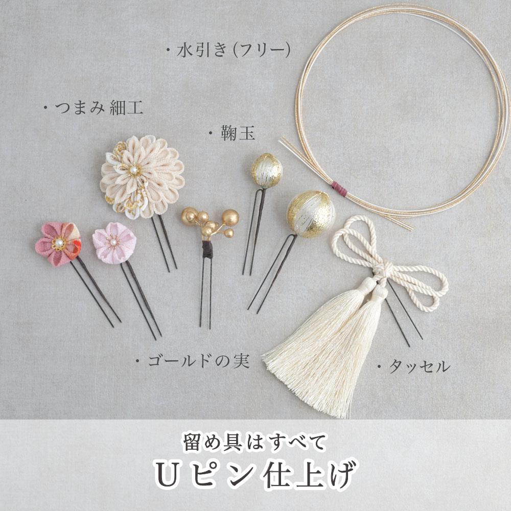 ◉つまみ細工、鞠玉はUピンにそれぞれ独立して取り付けてあります。
