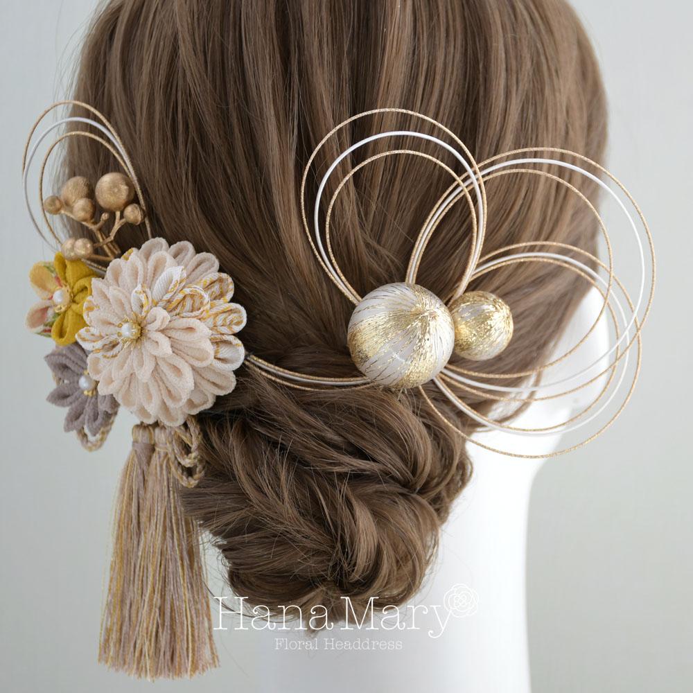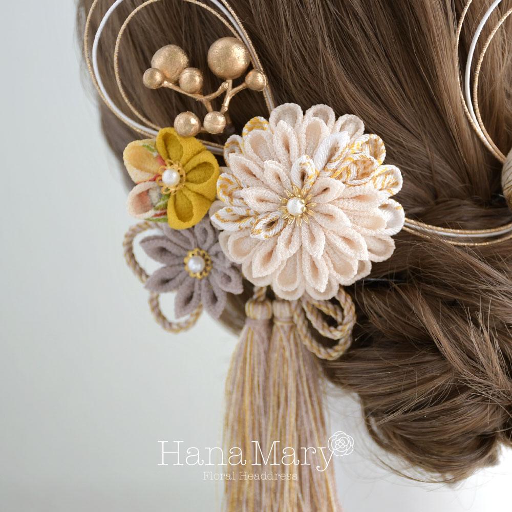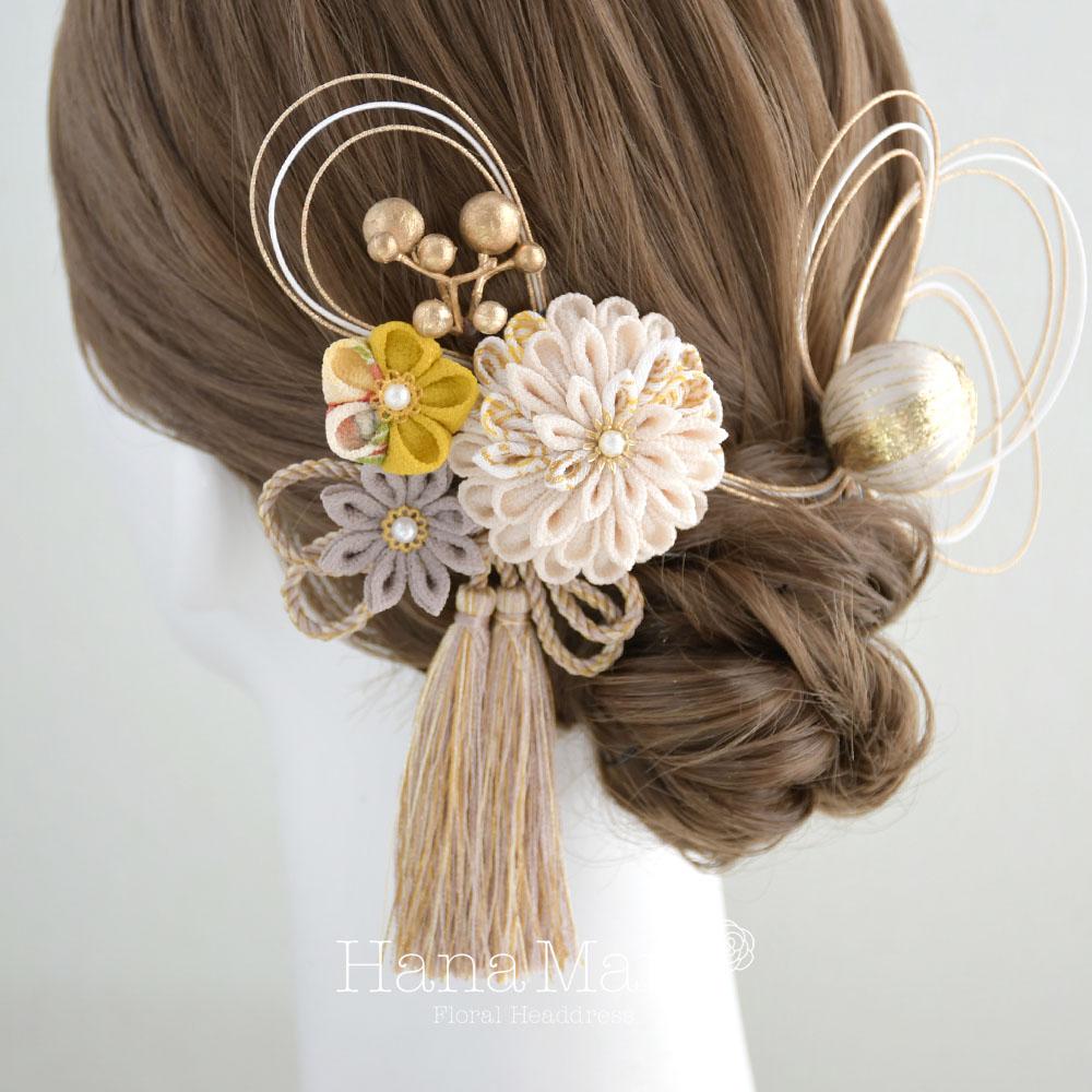 つまみ細工と鞠玉の髪飾り 卒業式 成人式 振袖 袴 着物 和装【レトロモダン】