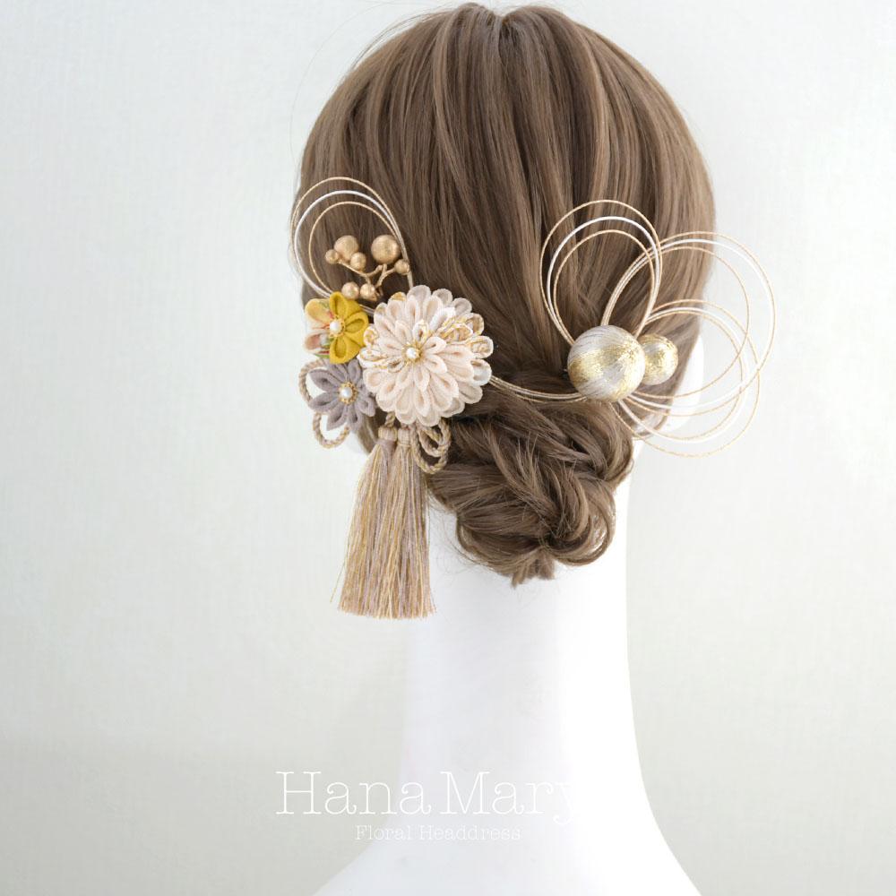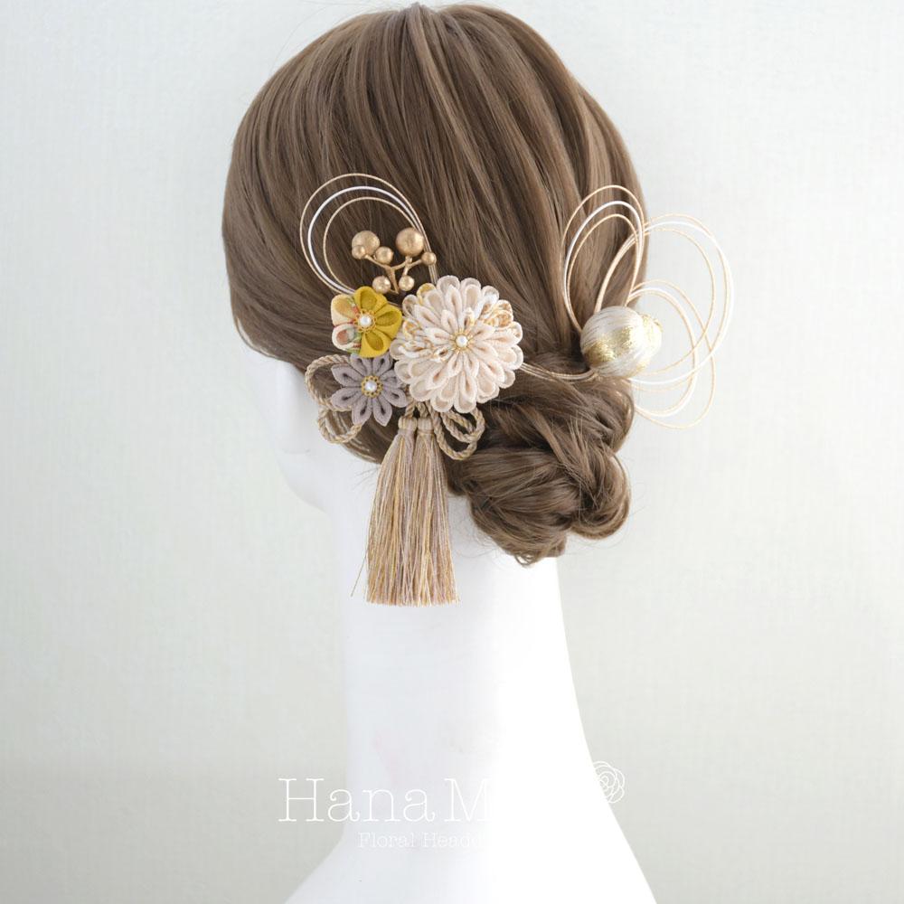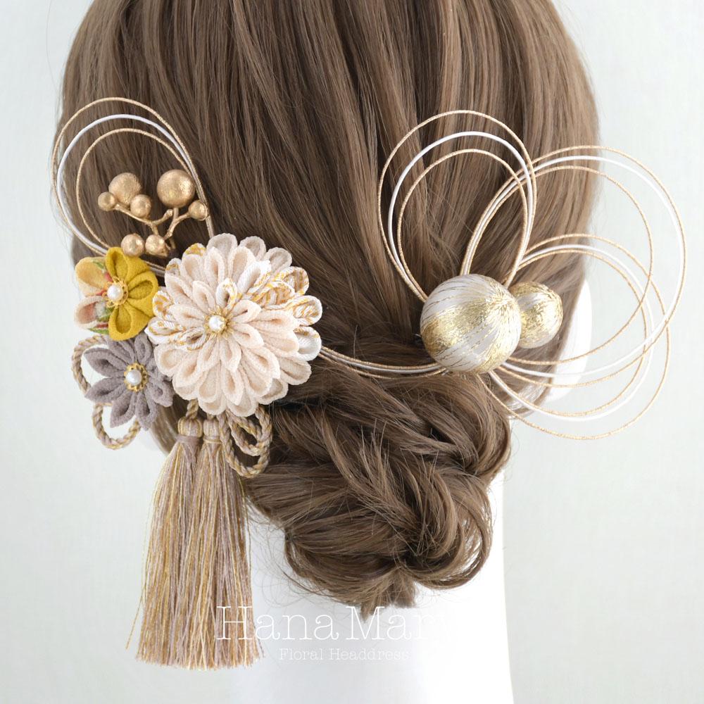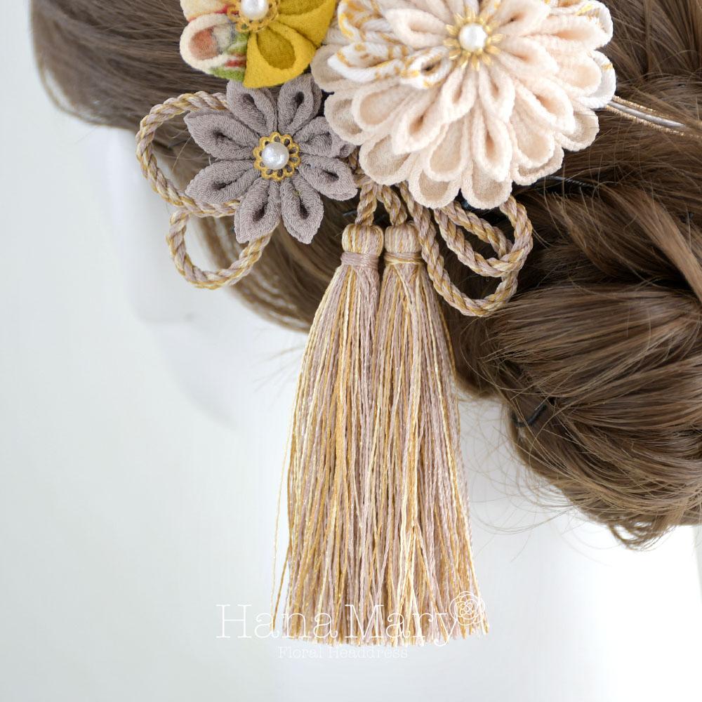 つまみ細工と鞠玉の髪飾り 卒業式 成人式 振袖 袴 着物 和装【レトロモダン】