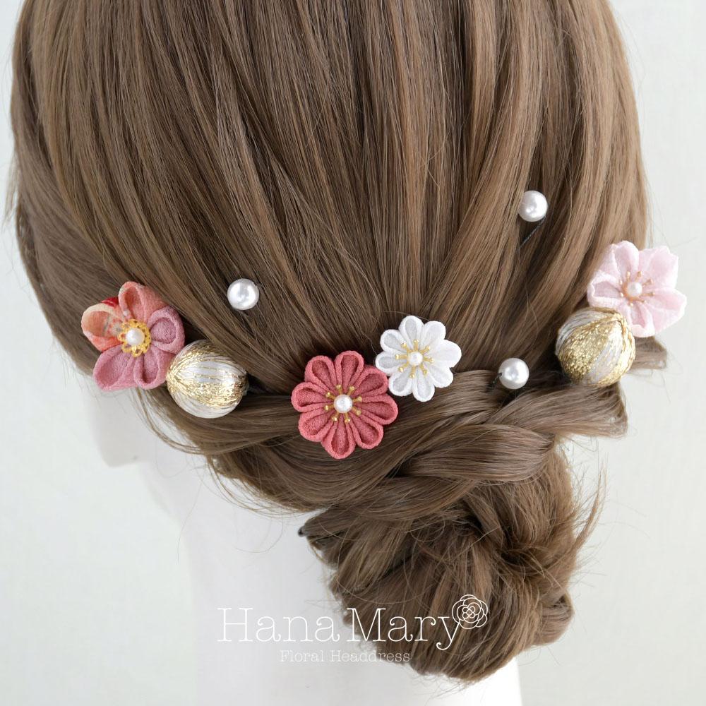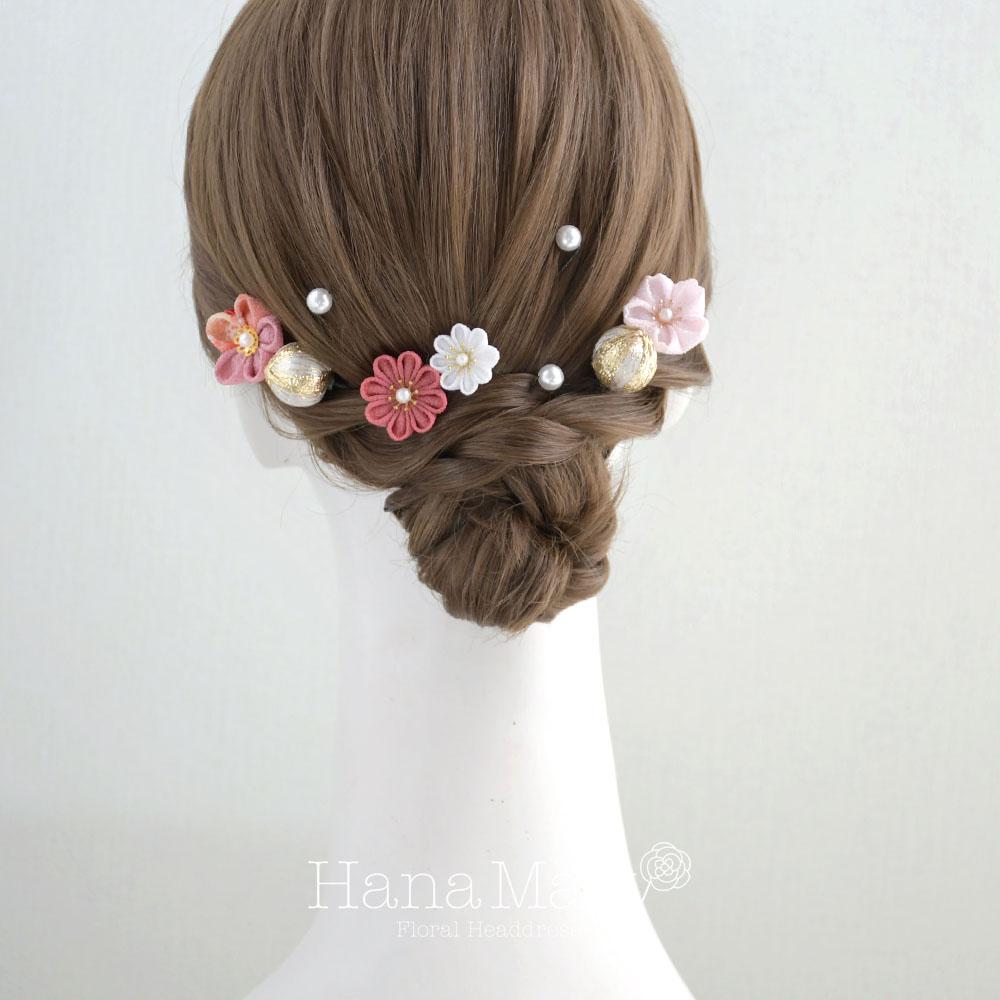 つまみ細工を散らして 卒業式 髪飾り 七五三 成人式 振袖 袴 着物【さくら】
