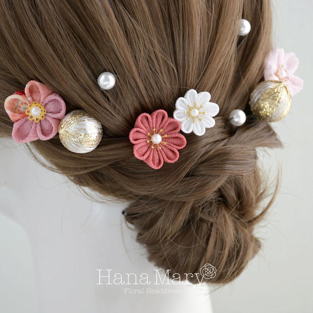 シンプルなボリューム感でバランス良く使いやすいよう、鞠玉とパールピン(8mm)をセットにしました。