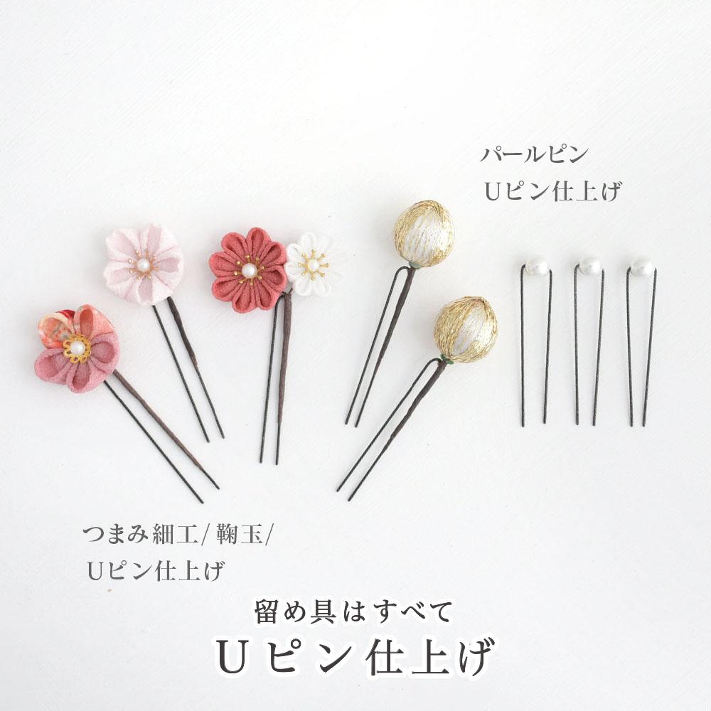 ◉つまみ細工、鞠玉はUピンにそれぞれ独立して取り付けてあります。