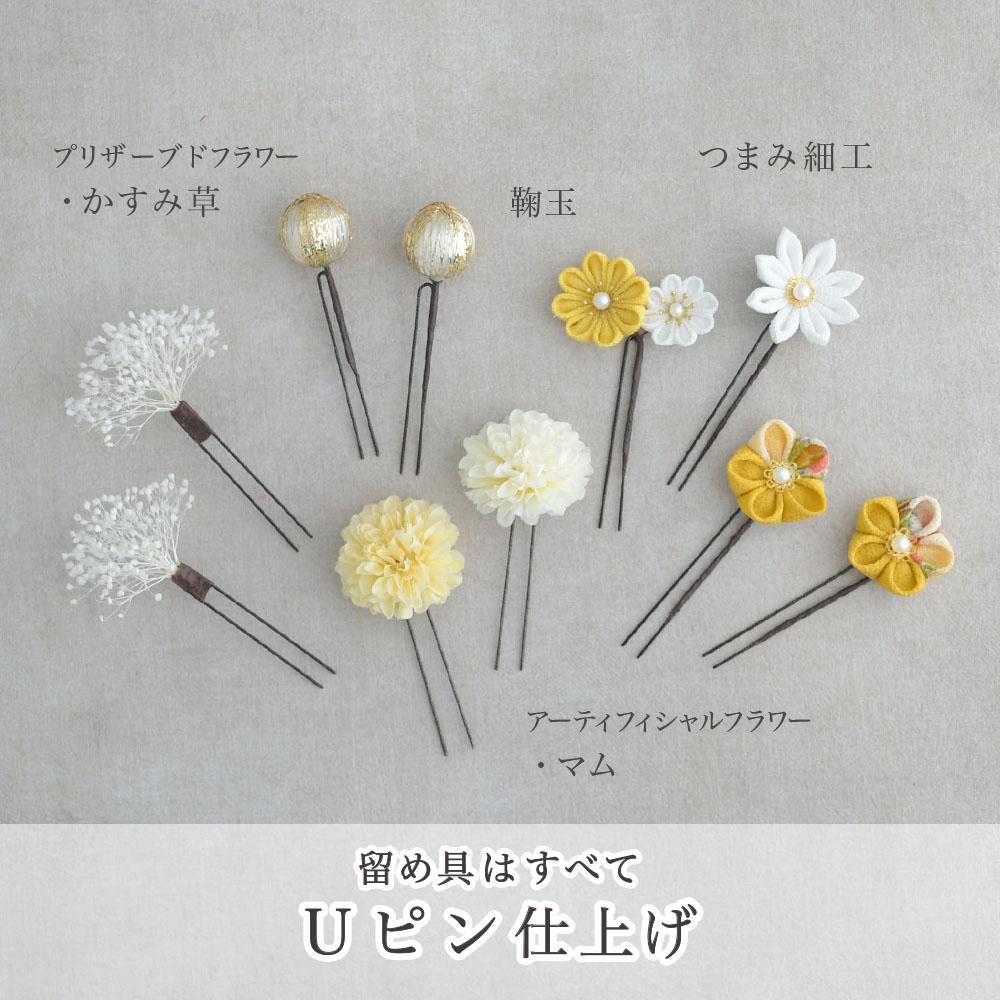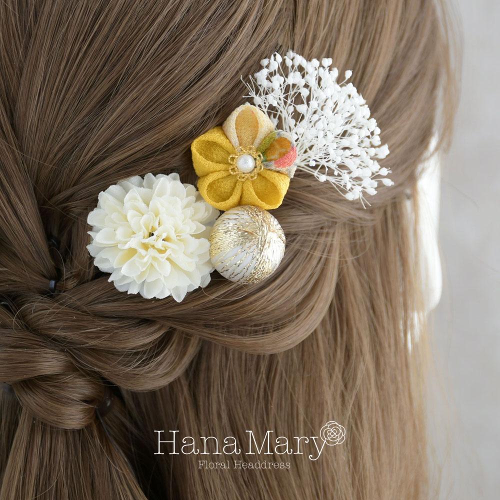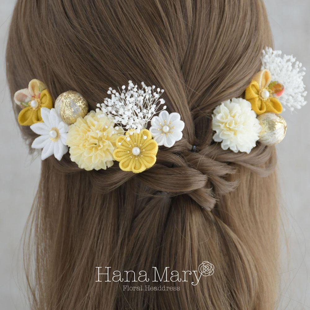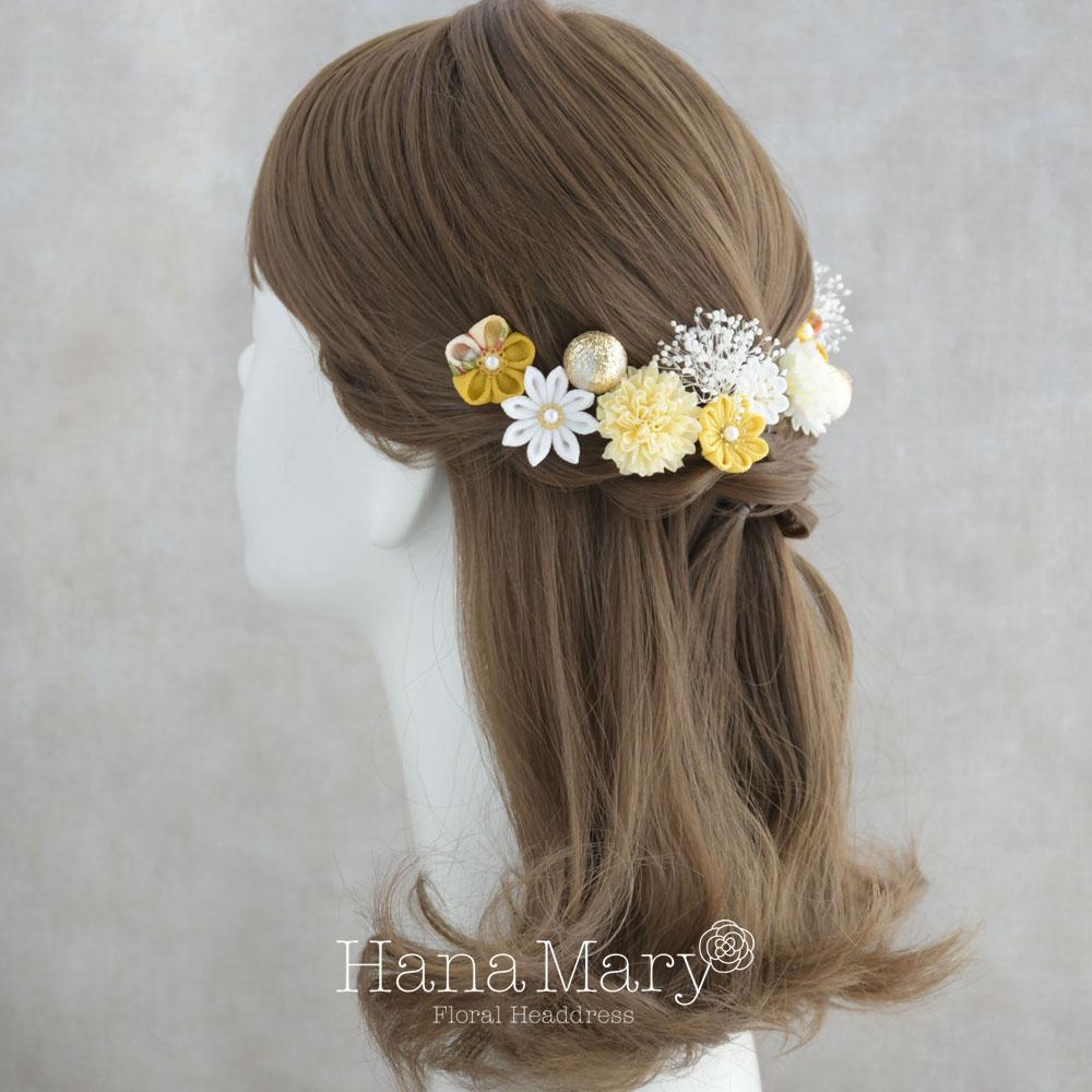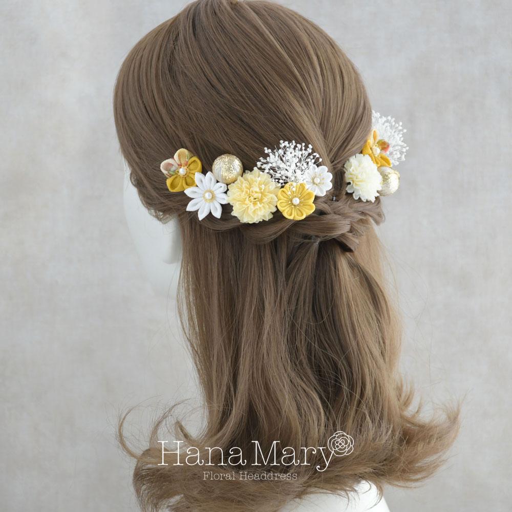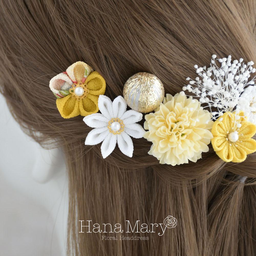 つまみ細工とマムの髪飾り 卒業式 成人式 七五三【イエロー】袴 振袖 着物