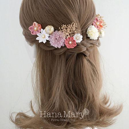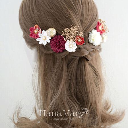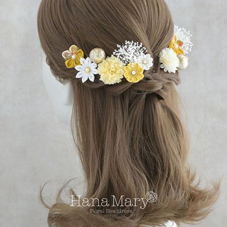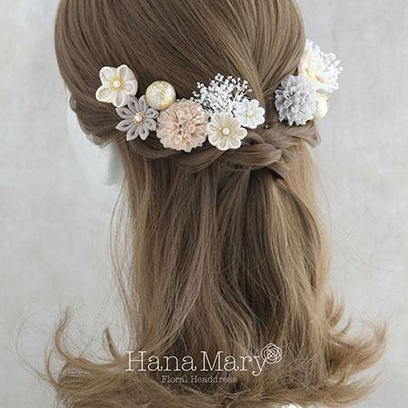 HanaMaryの髪飾りは生花をリアルに再現したアートフラワーと呼ばれるハイクオリティーな造花を使用しています。耐久性に優れ、成人式・卒業式やウェディングなどに何度でも繰り返し使用することができます。