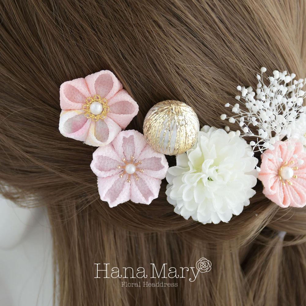 つまみ細工とマムの髪飾り 卒業式 成人式 七五三【さくら】袴 振袖 着物