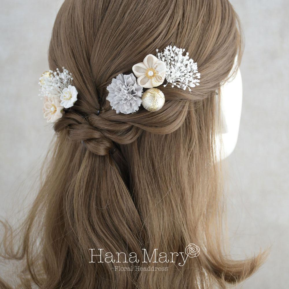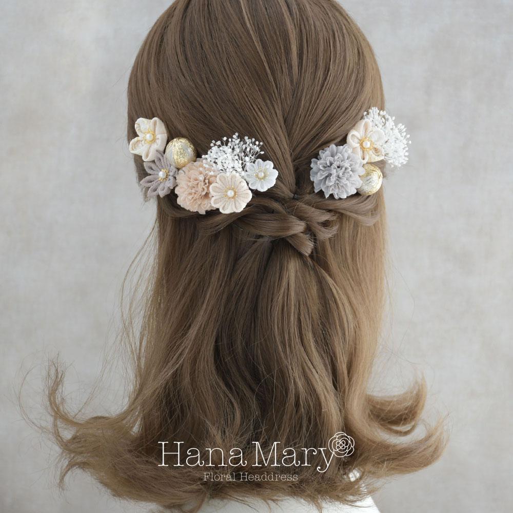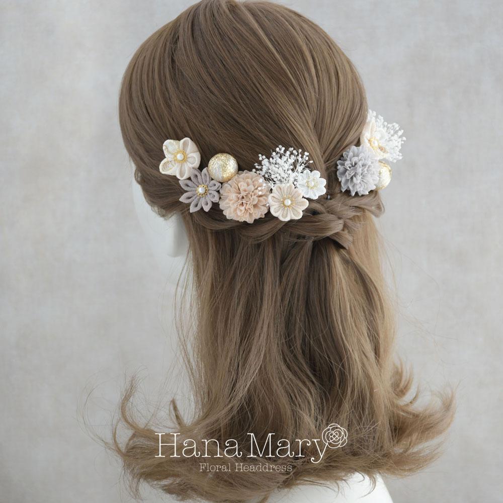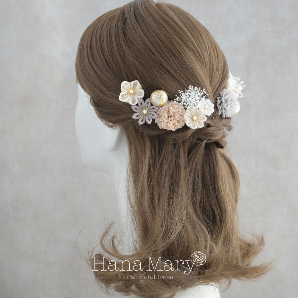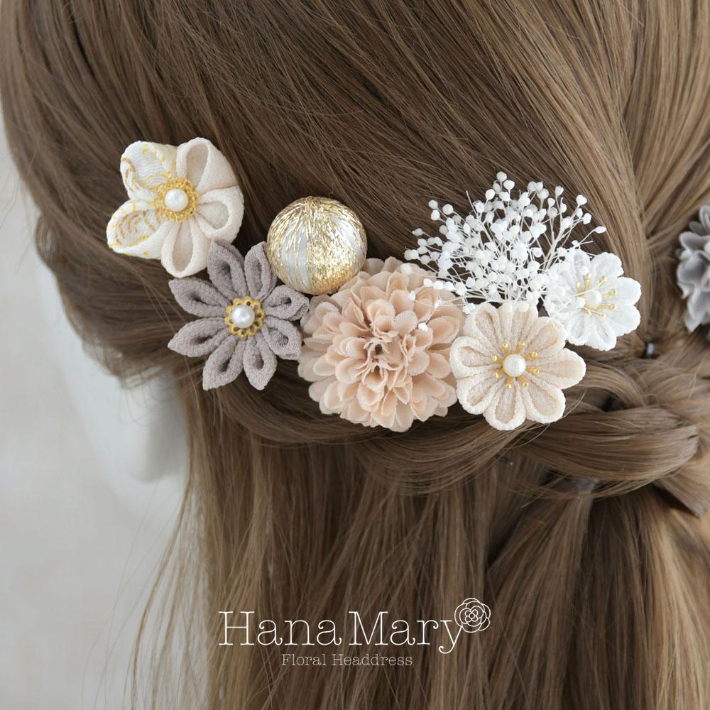 つまみ細工とマムの髪飾り 卒業式 成人式 七五三【ベージュ】袴 振袖 着物