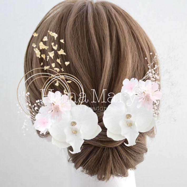 その日のヘアスタイルによって自由に一輪一輪配置できます。お花の数が多い場合でも、アメピンを追加して簡単にしっかりと固定できます。