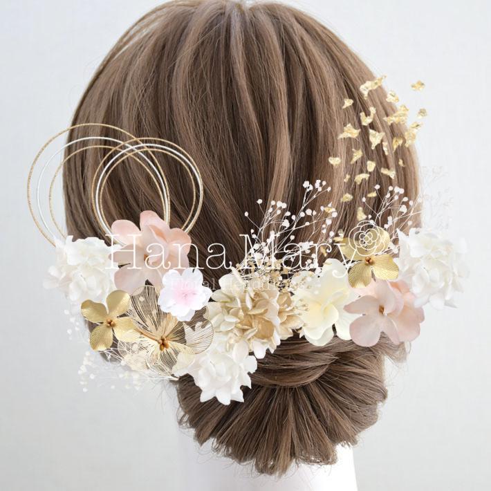 HanaMaryの髪飾りは生花をリアルに再現したアートフラワーと呼ばれるハイクオリティーな造花を使用しています。耐久性に優れ、成人式・卒業式やウェディングなどに何度でも繰り返し使用することができます。