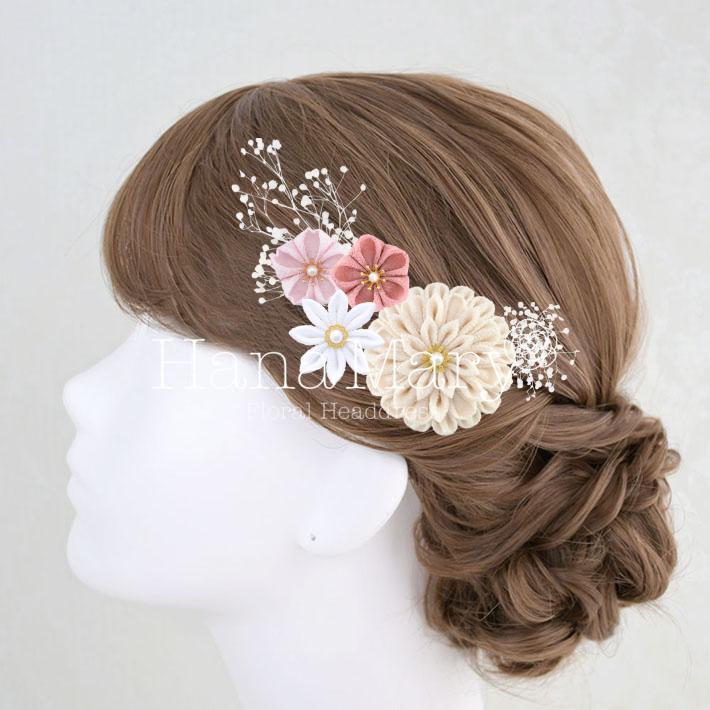 その日のヘアスタイルによって自由に一輪一輪配置できます。お花の数が多い場合でも、アメピンを追加して簡単にしっかりと固定できます。
