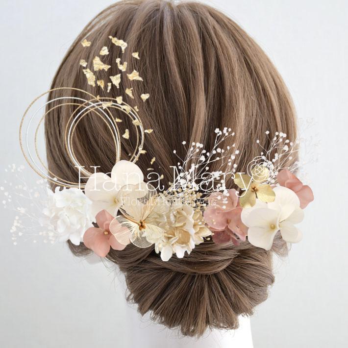 HanaMaryの髪飾りは生花をリアルに再現したアートフラワーと呼ばれるハイクオリティーな造花を使用しています。耐久性に優れ、成人式・卒業式やウェディングなどに何度でも繰り返し使用することができます。