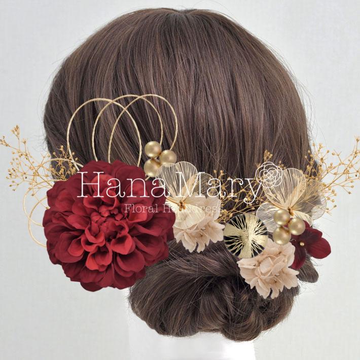 HanaMaryの髪飾りは生花をリアルに再現したアートフラワーと呼ばれるハイクオリティーな造花を使用しています。耐久性に優れ、成人式・卒業式やウェディングなどに何度でも繰り返し使用することができます。