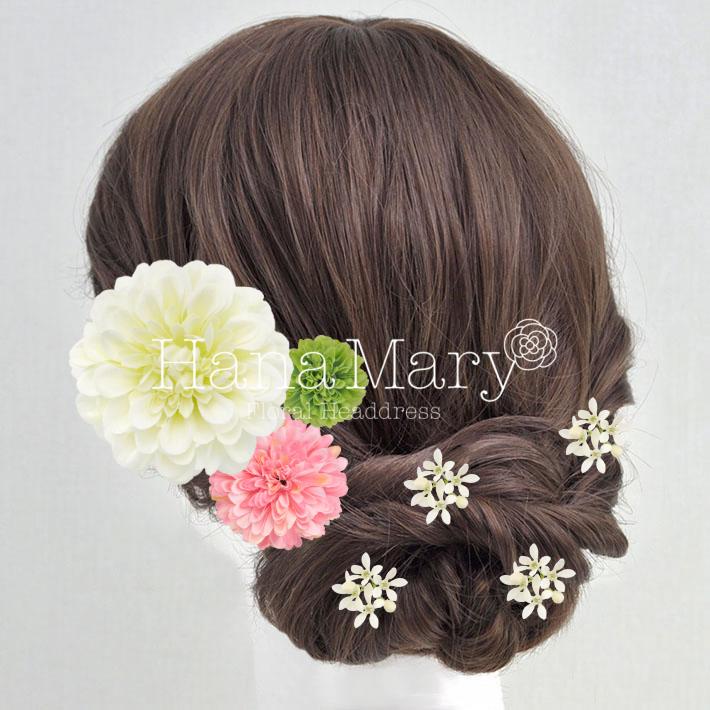 その日のヘアスタイルによって自由に一輪一輪配置できます。お花の数が多い場合でも、アメピンを追加して簡単にしっかりと固定できます。
