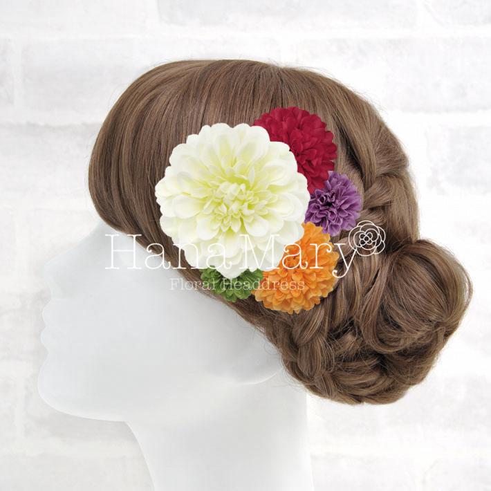 その日のヘアスタイルによって自由に一輪一輪配置できます。お花の数が多い場合でも、アメピンを追加して簡単にしっかりと固定できます。