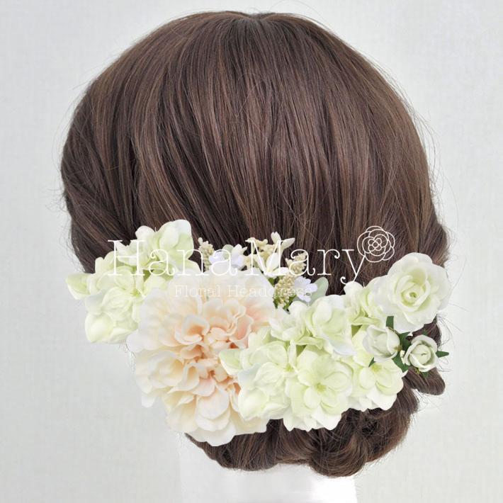 その日のヘアスタイルによって自由に一輪一輪配置できます。お花の数が多い場合でも、アメピンを追加して簡単にしっかりと固定できます。