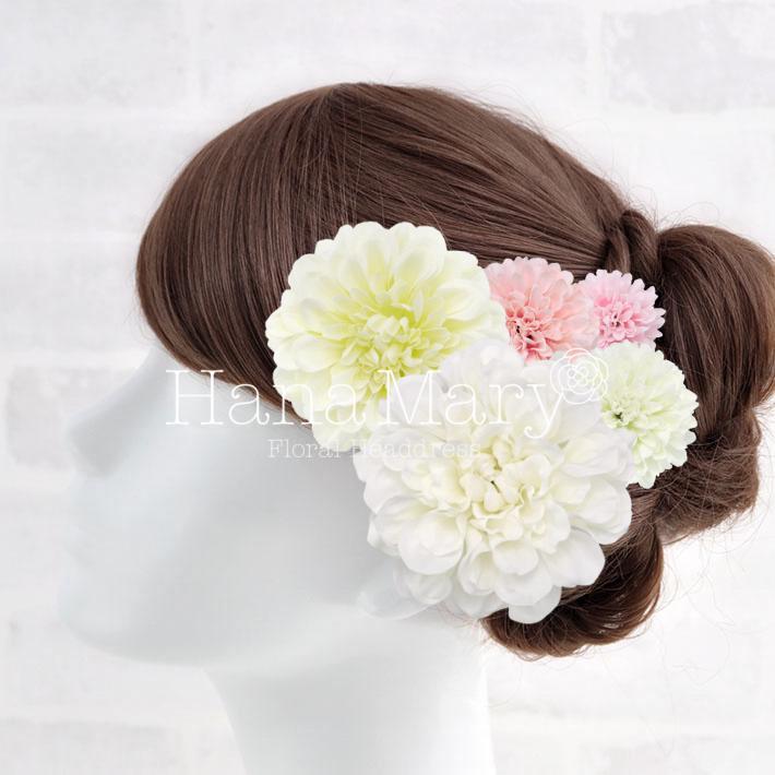 その日のヘアスタイルによって自由に一輪一輪配置できます。お花の数が多い場合でも、アメピンを追加して簡単にしっかりと固定できます。