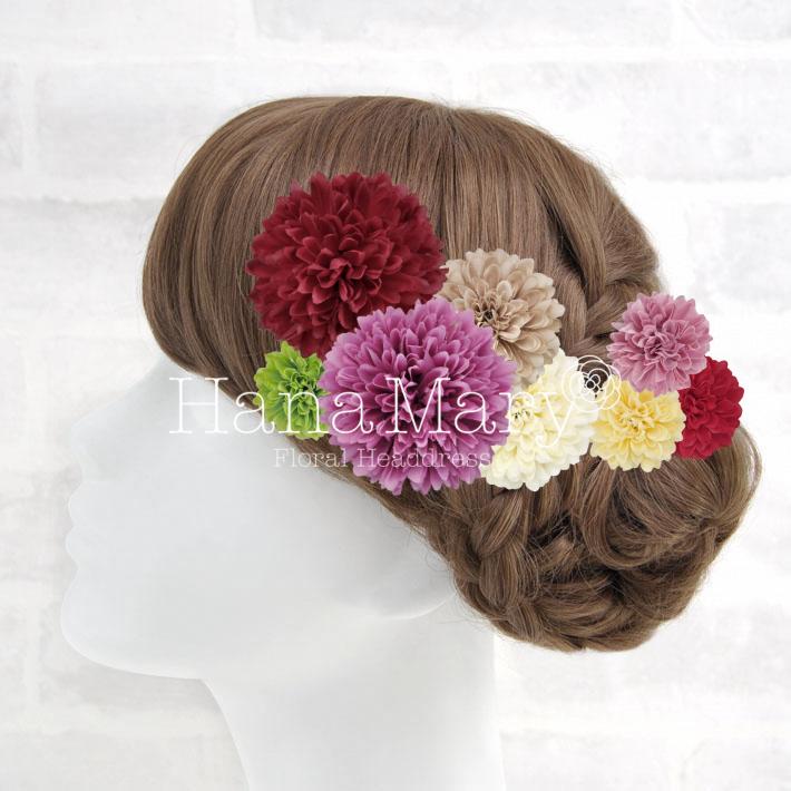 その日のヘアスタイルによって自由に一輪一輪配置できます。お花の数が多い場合でも、アメピンを追加して簡単にしっかりと固定できます。