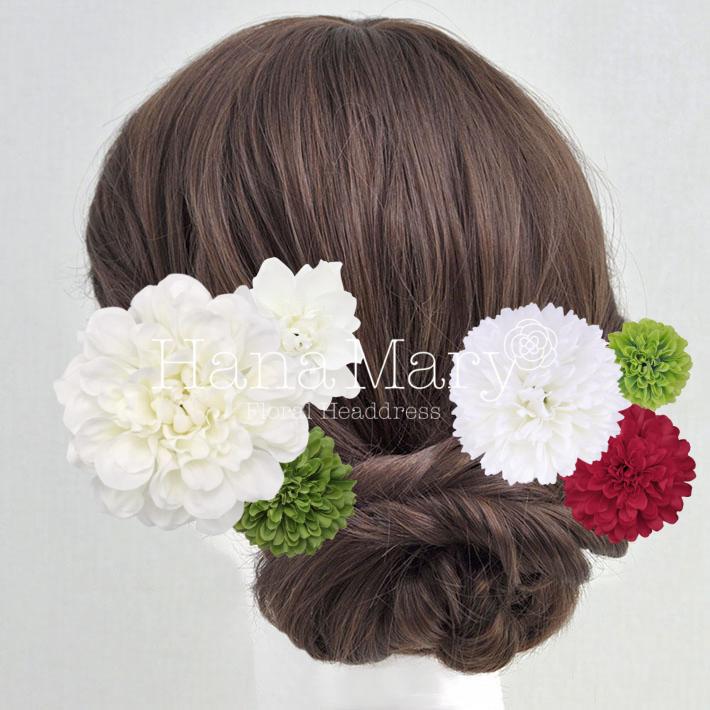 その日のヘアスタイルによって自由に一輪一輪配置できます。お花の数が多い場合でも、アメピンを追加して簡単にしっかりと固定できます。