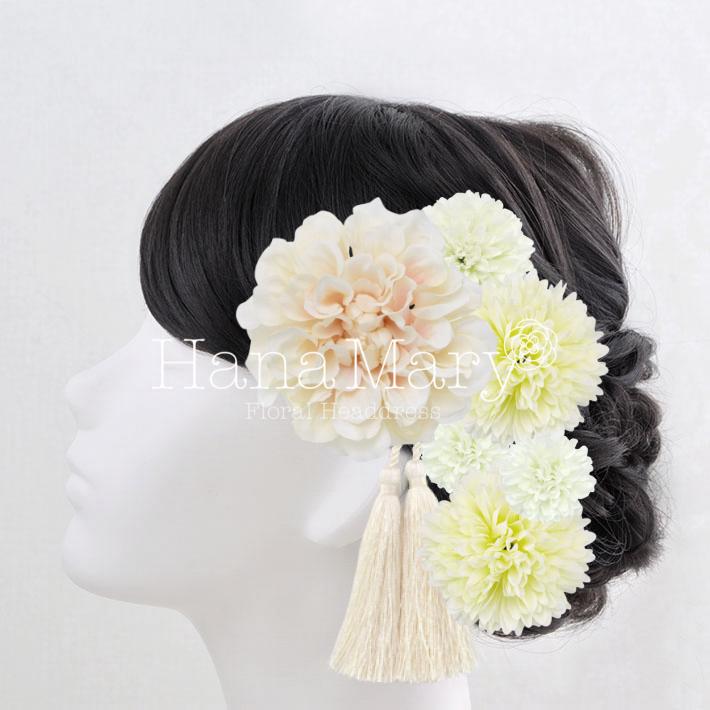 HanaMaryの髪飾りは生花をリアルに再現したアートフラワーと呼ばれるハイクオリティーな造花を使用しています。耐久性に優れ、成人式・卒業式やウェディングなどに何度でも繰り返し使用することができます。